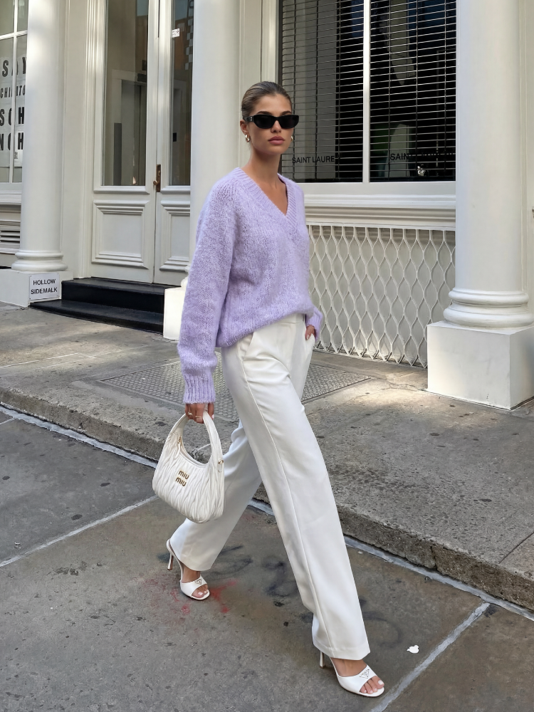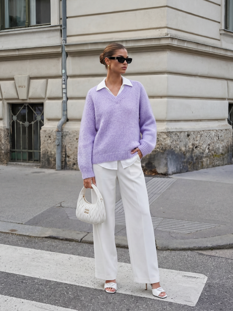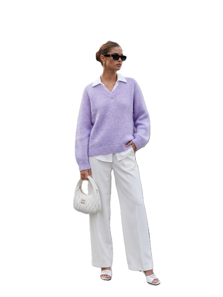 Wyjątkowy sweter w kolorze fioletowym.