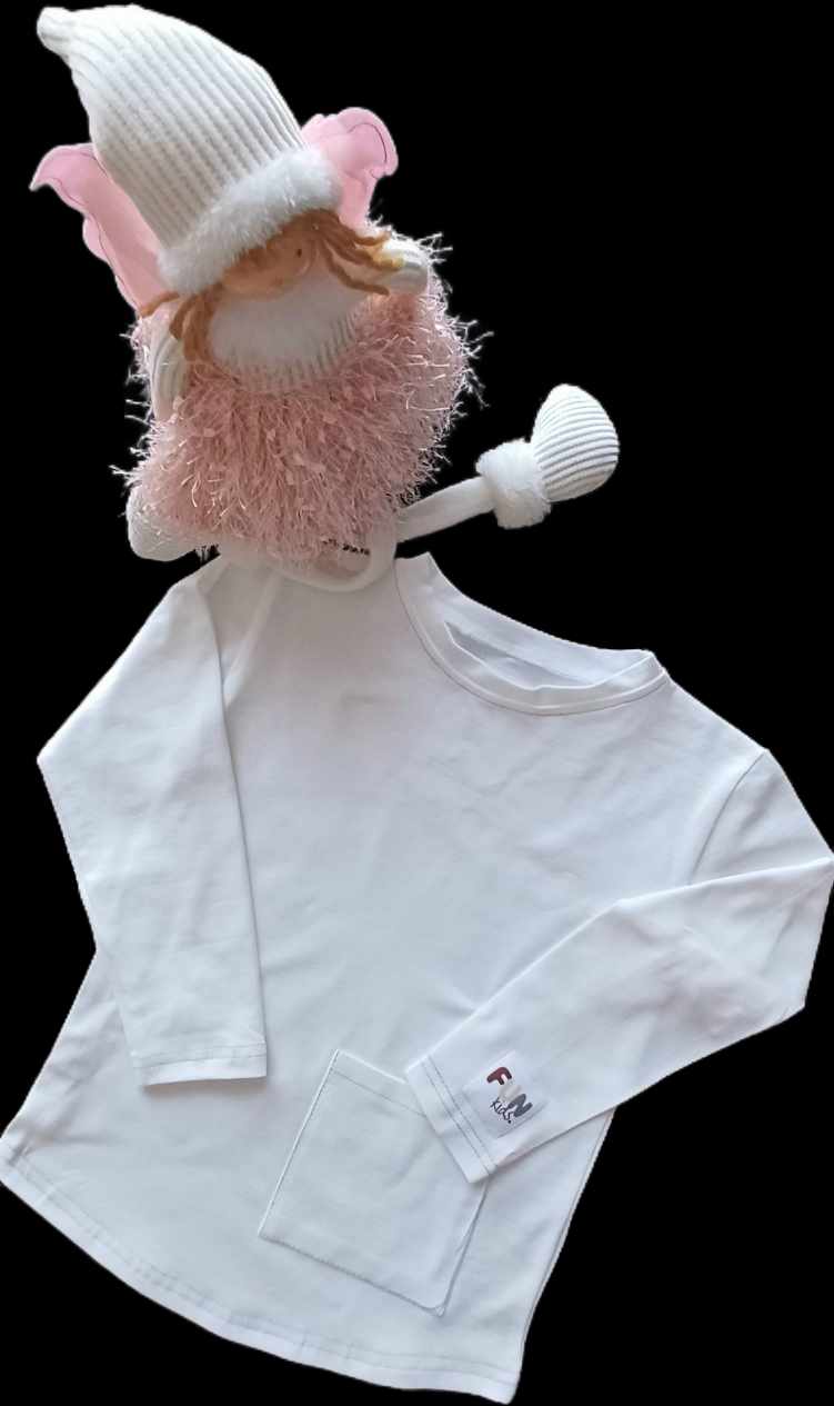 To uniwersalna bawełniana bluzka dziecięca w kolorze białym ,dedykowana zarówno dla chłopców ,jak i dziewczynek.