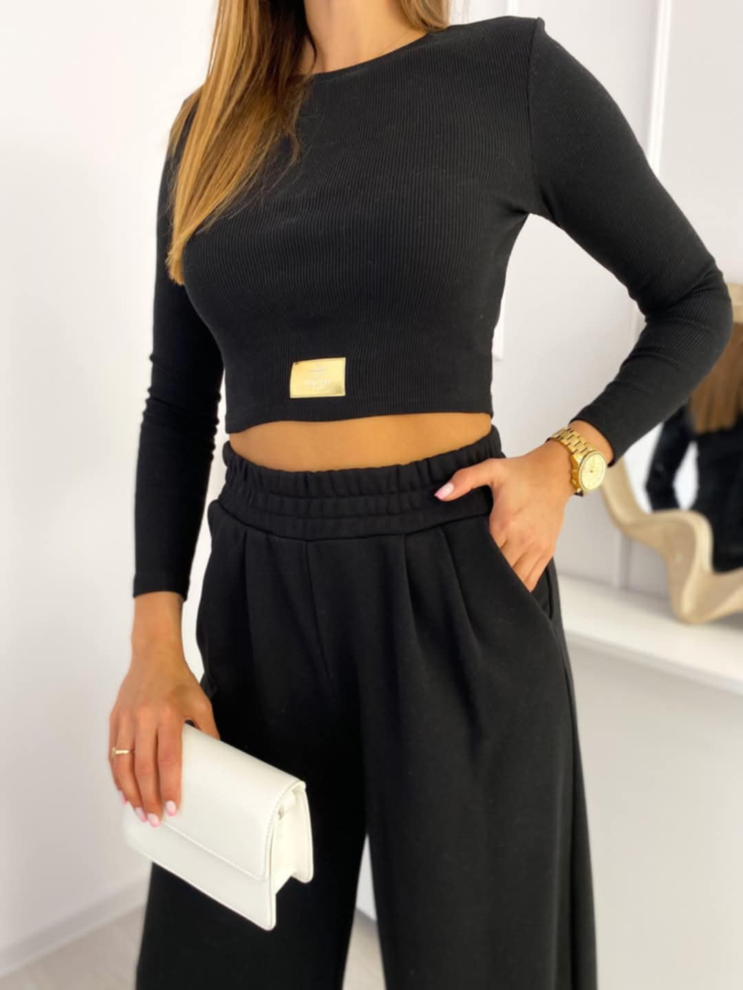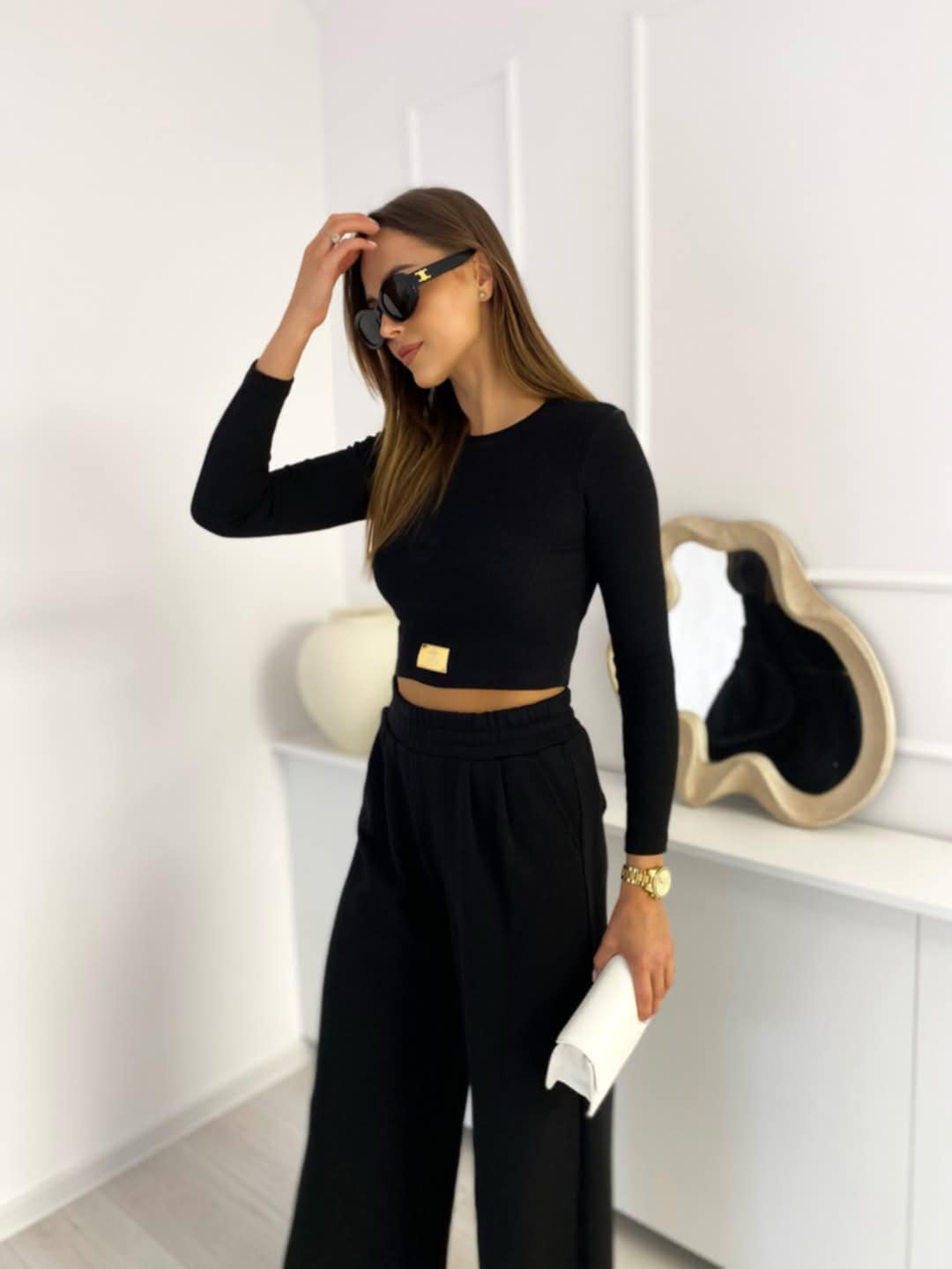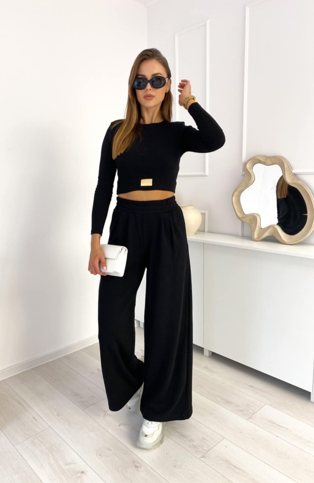 Aszmi Style Stylowy komplet dresowy damski,bluzka/szerokie spodnie-czarny