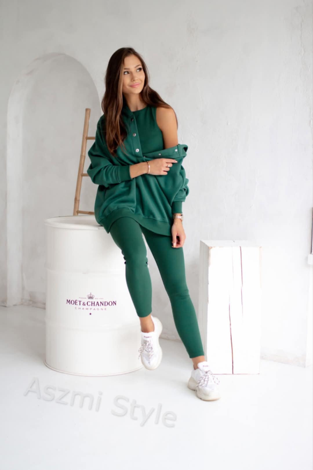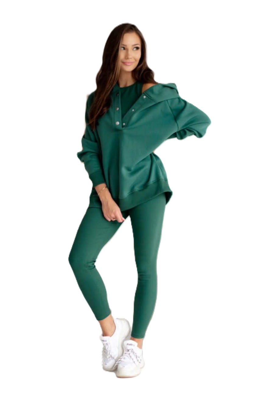 Aszmi Style dres damski,komplet dresowy 3w1 butelkowa zieleń