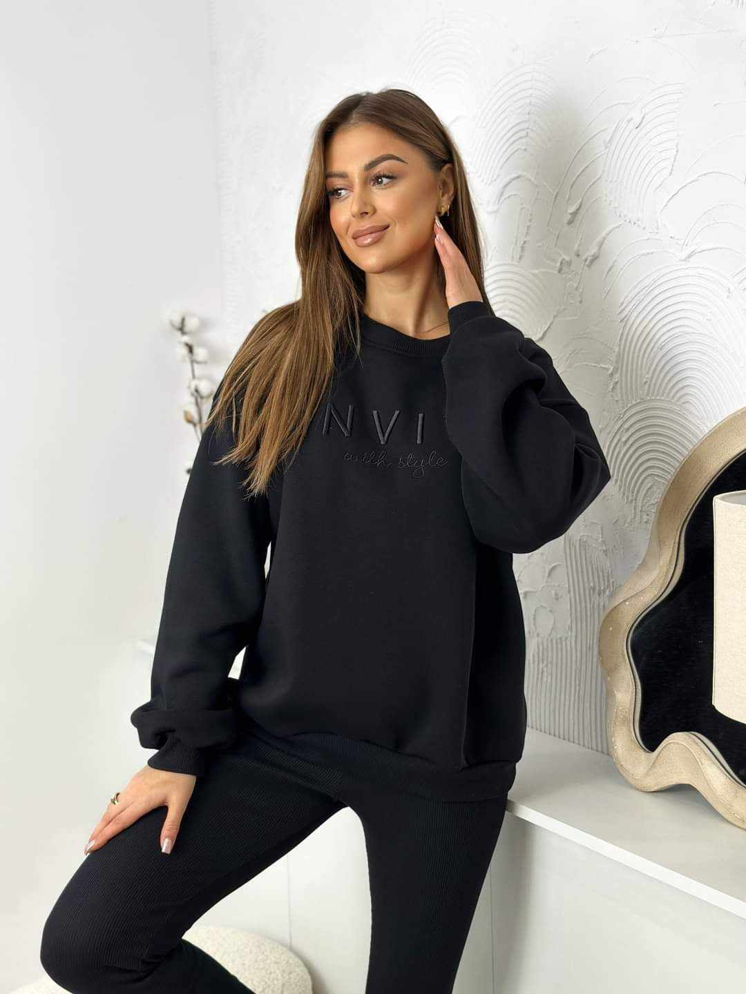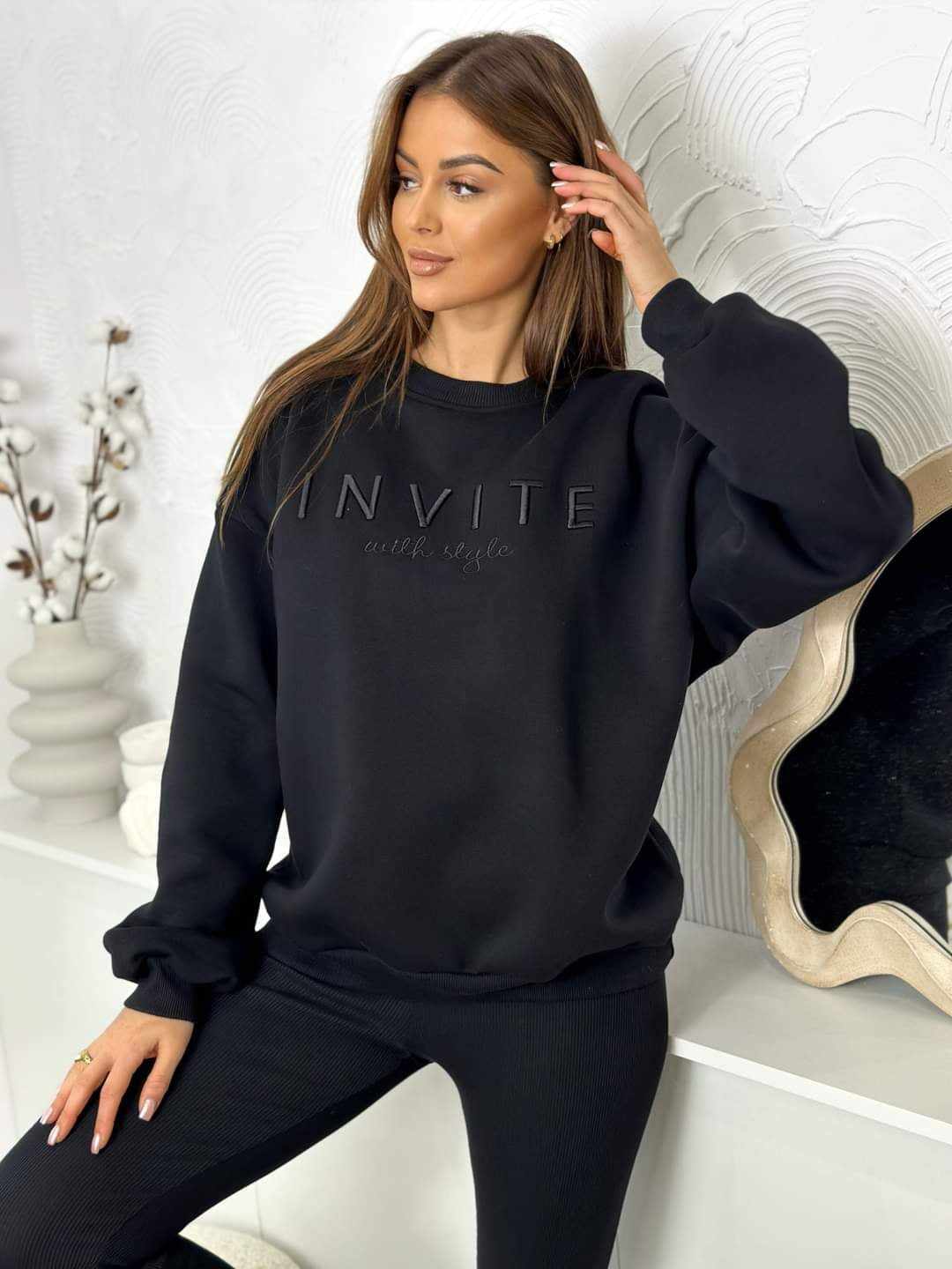 Czarny kolor dodaje elegancji ,a luźny fason bluzy nadaje swobodnego charakteru całej stylizacji.