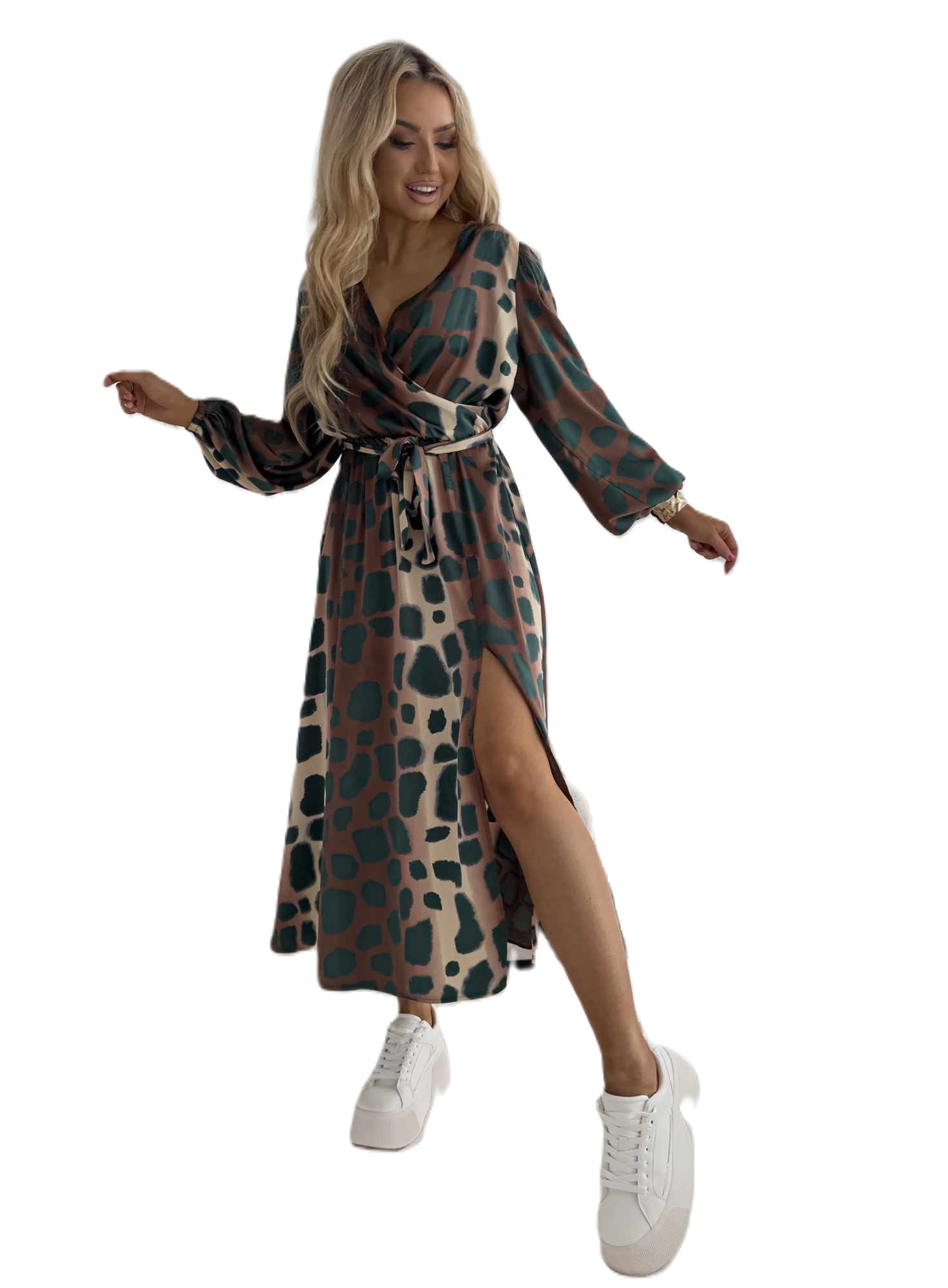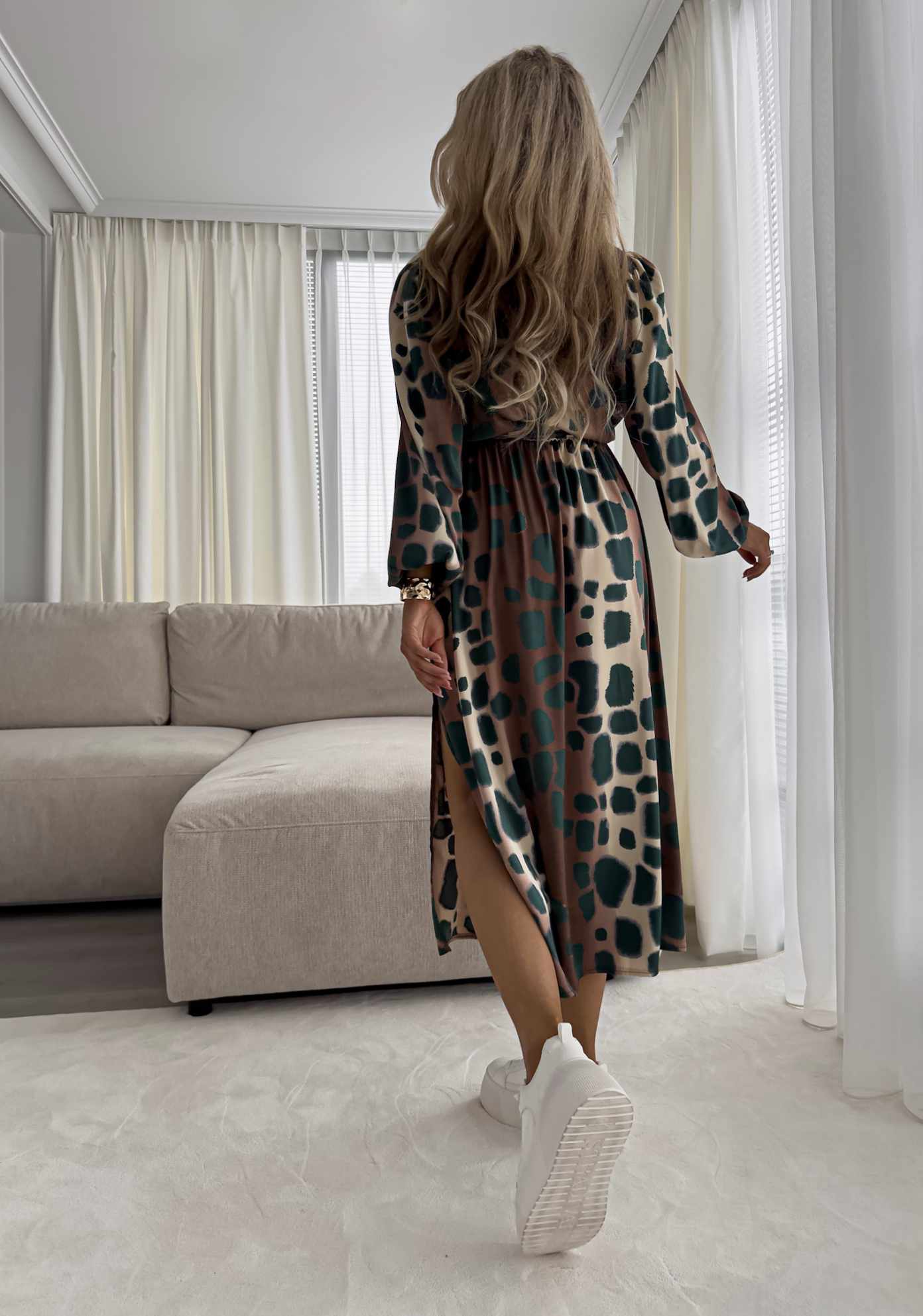 Mieszanka kolorów brąz, butelkowa zieleń i beż sprawiają ,że wygląda zjawiskowo.