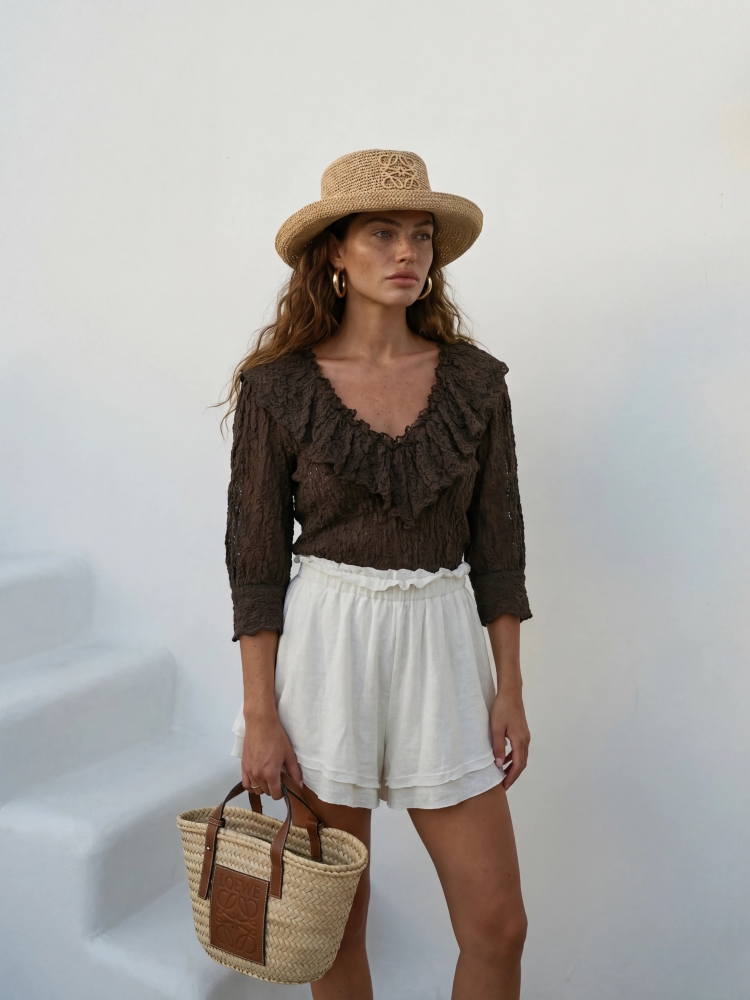 Bluzka damska boho z falbaną przy dekolcie to idealne połączenie kobiecej elegancji i swobodnego stylu.