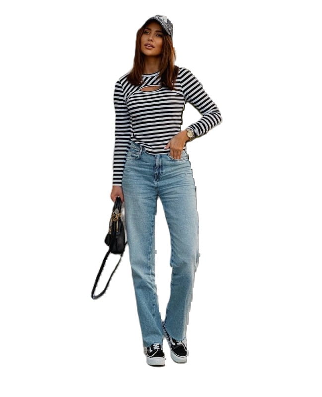Ponadczasowa bluzka w paski o lekko taliowanym kroju.