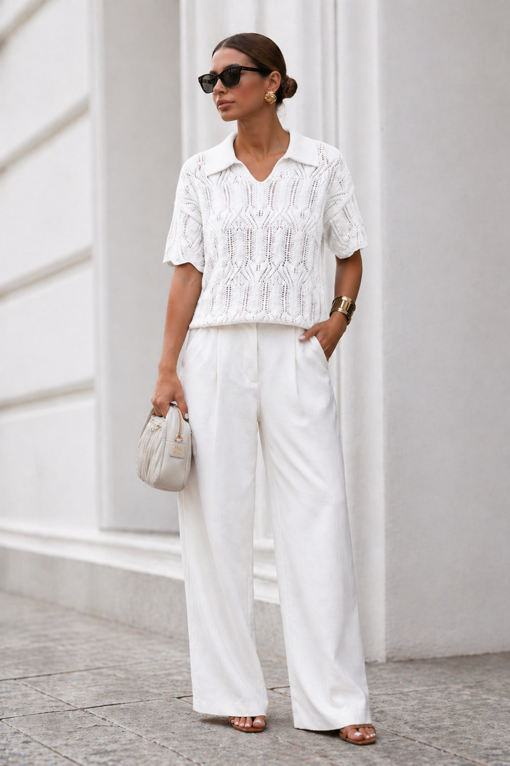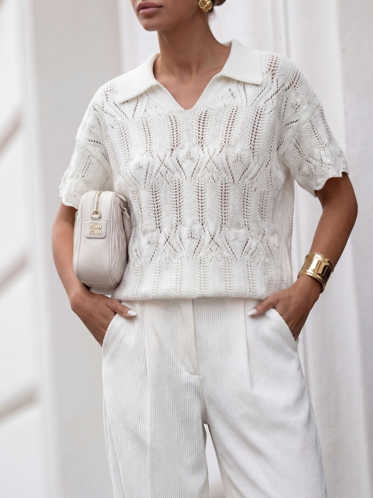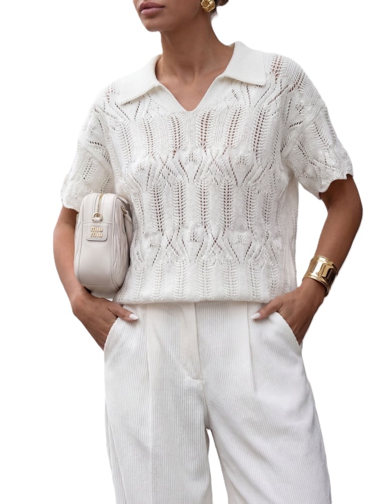 Bluzka damska polo ażurowy z kołnierzykiem – polska produkcja.