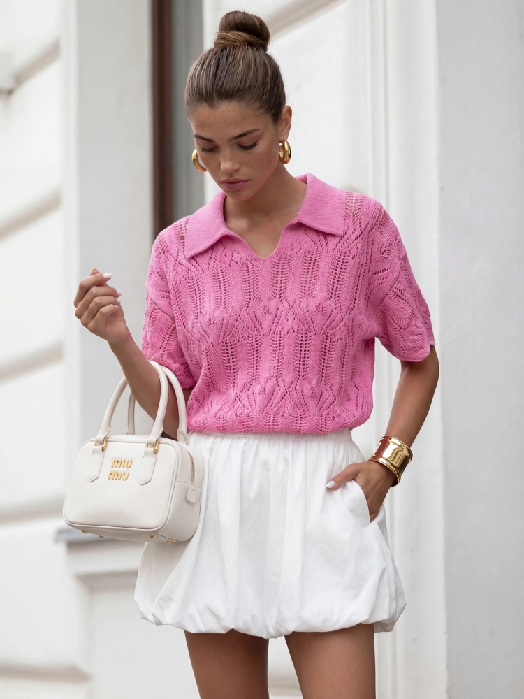 Bluzka damska polo ażurowy z kołnierzykiem – polska produkcja.