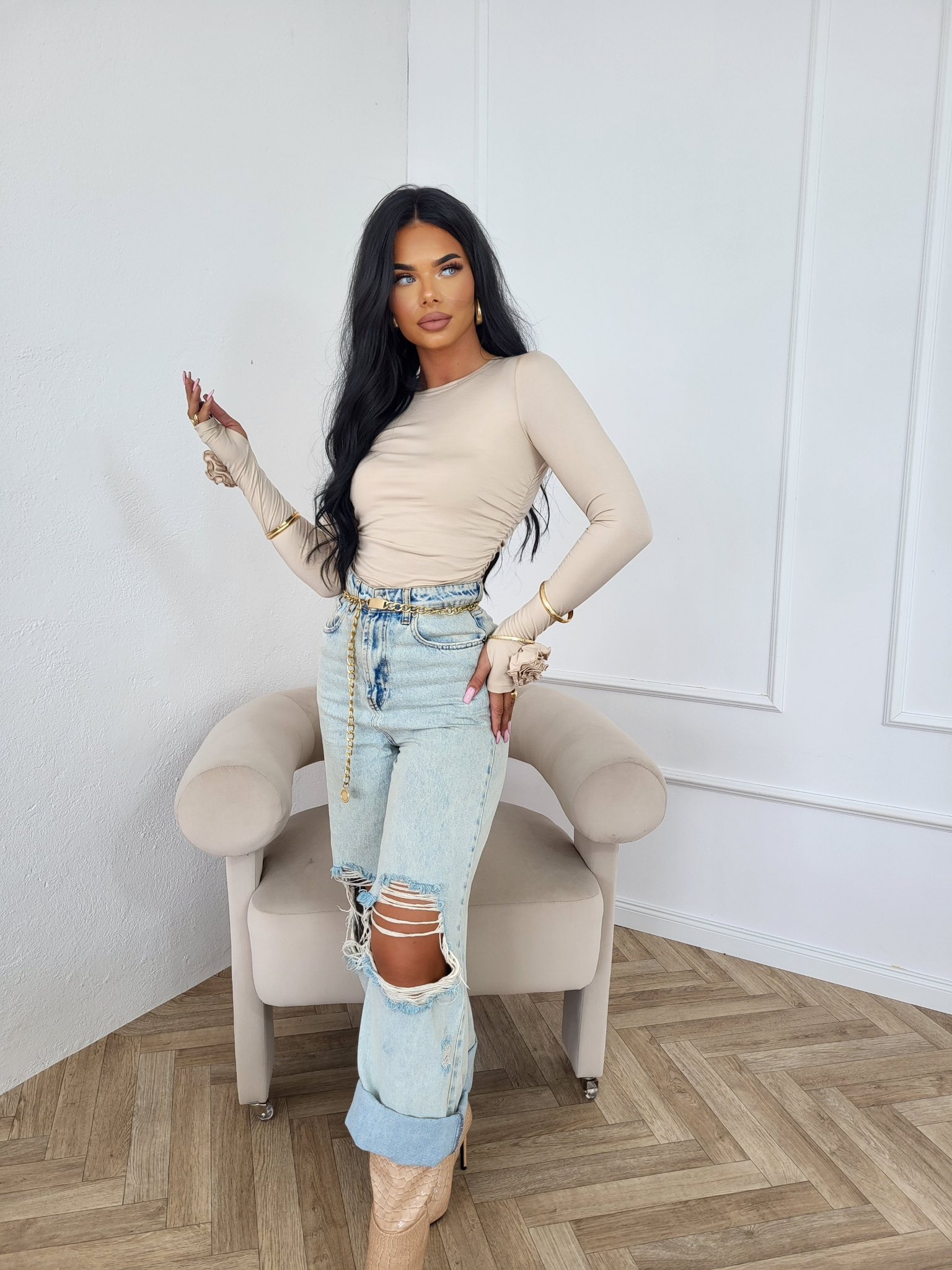 - uniwersalny, ponadczasowy kolor beżowy