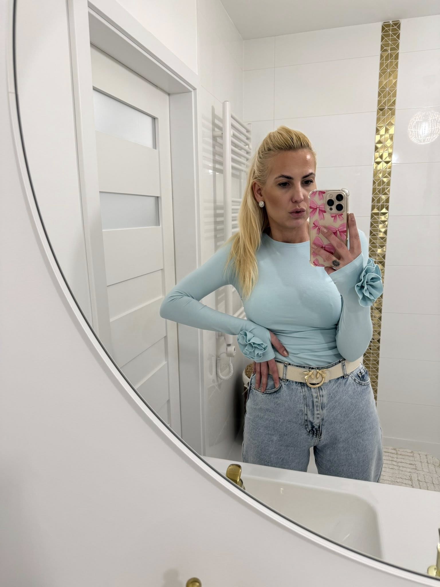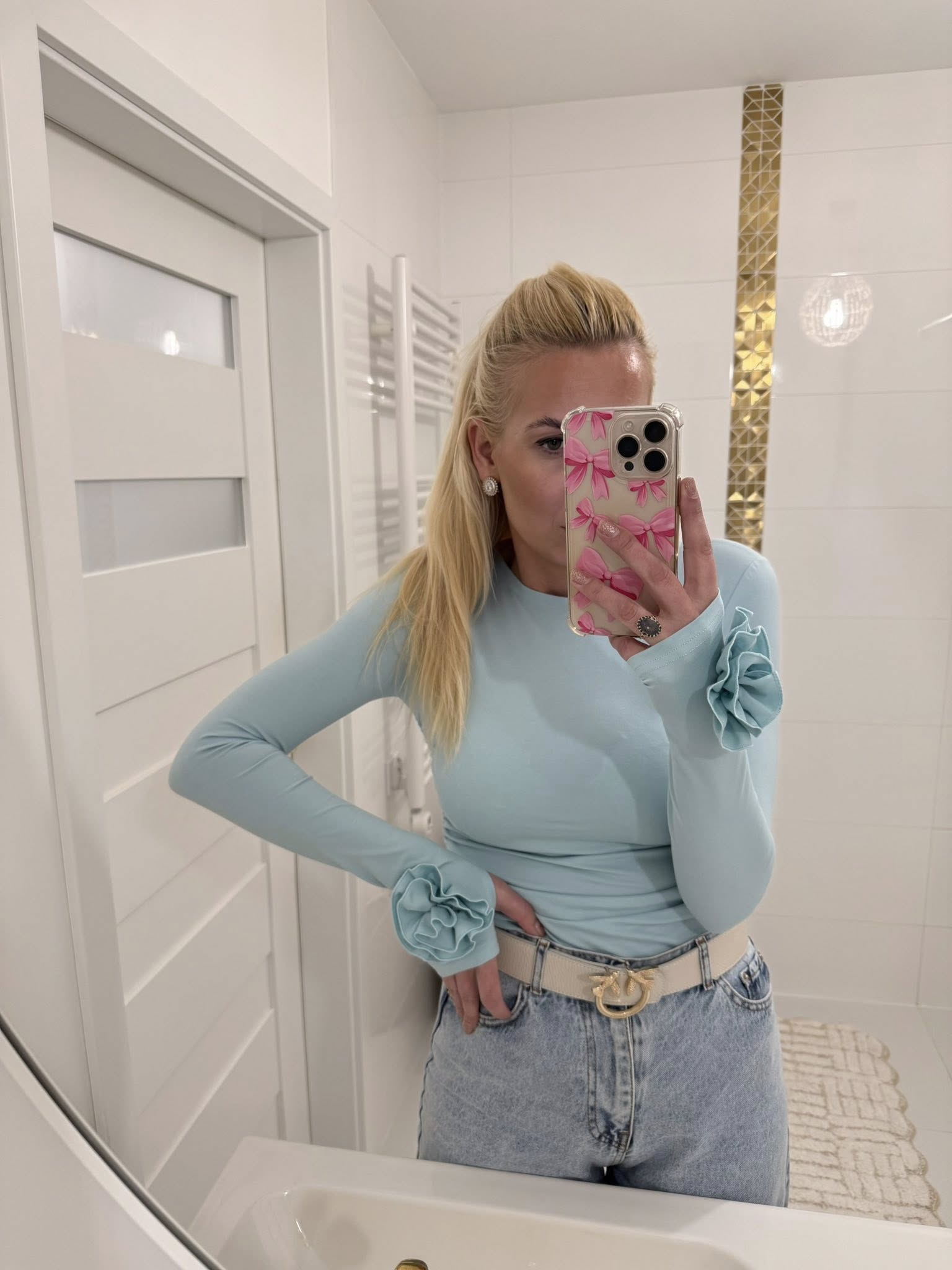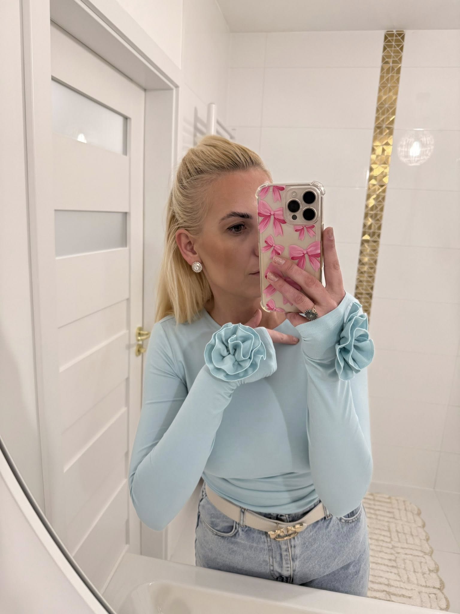 - ozdobne kwiatowe detale 3d na rękawach