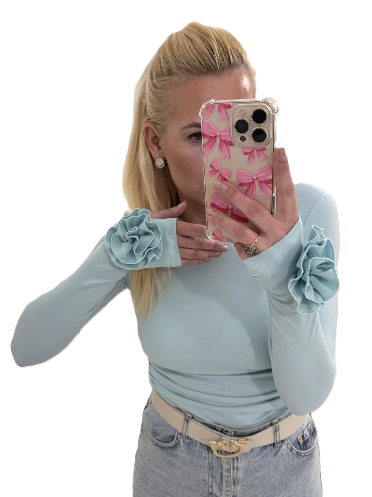 Bluzka damska z długim rękawem i różą miętowa wiskoza