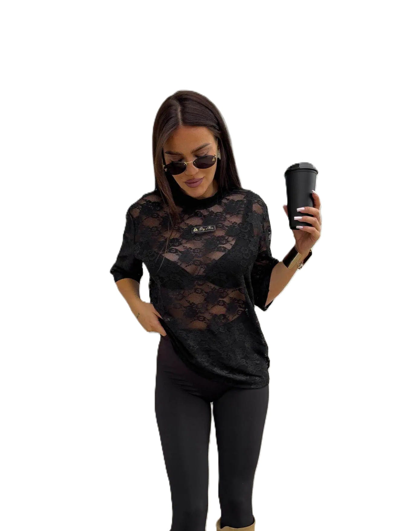 Elegancka, kobieca a zarazem wygodna bluzka damska w luźnym kroju, wykonana z delikatnej koronki.