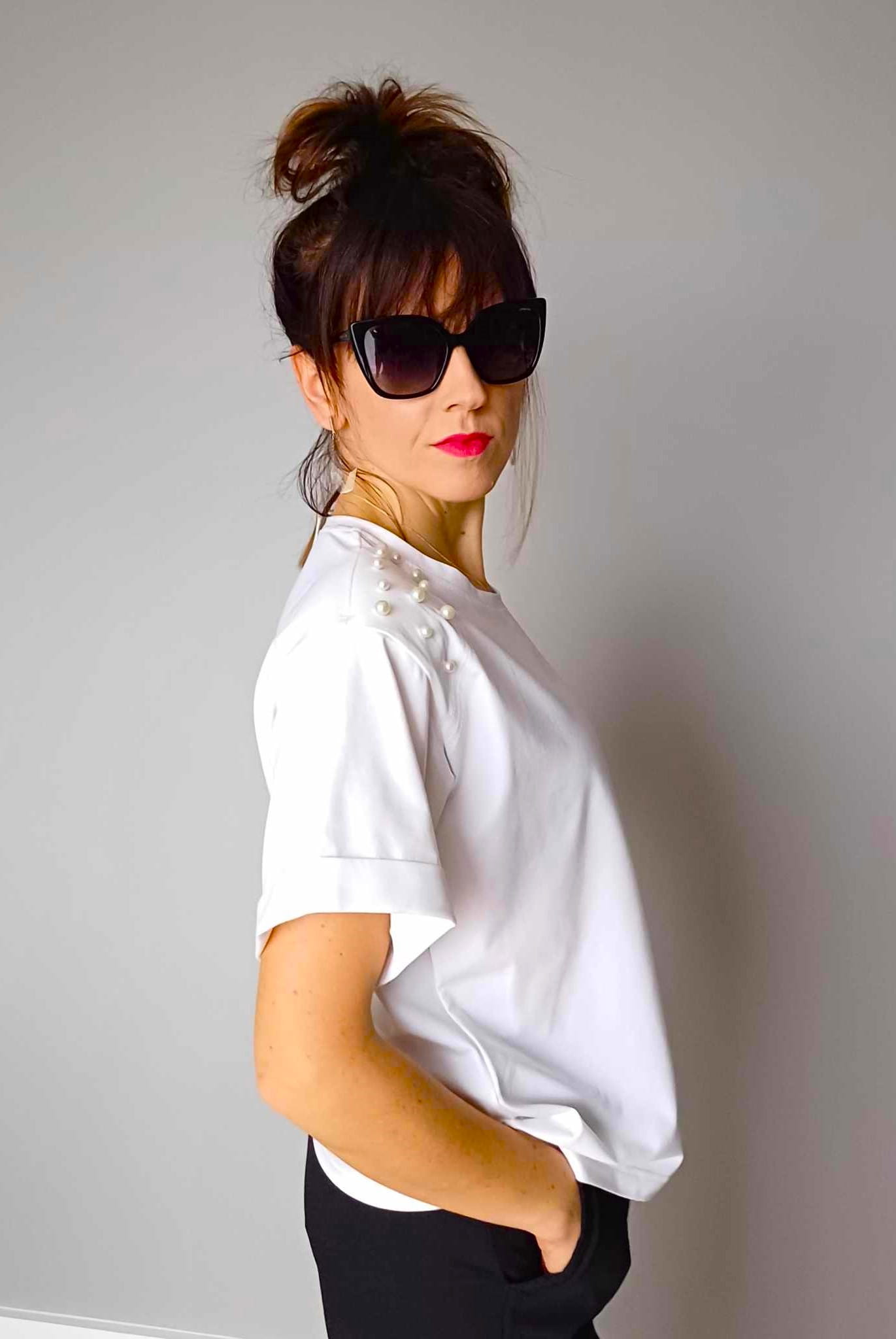 COCOMORE DAMSKA BLUZKA Z PERŁAMI BIAŁA