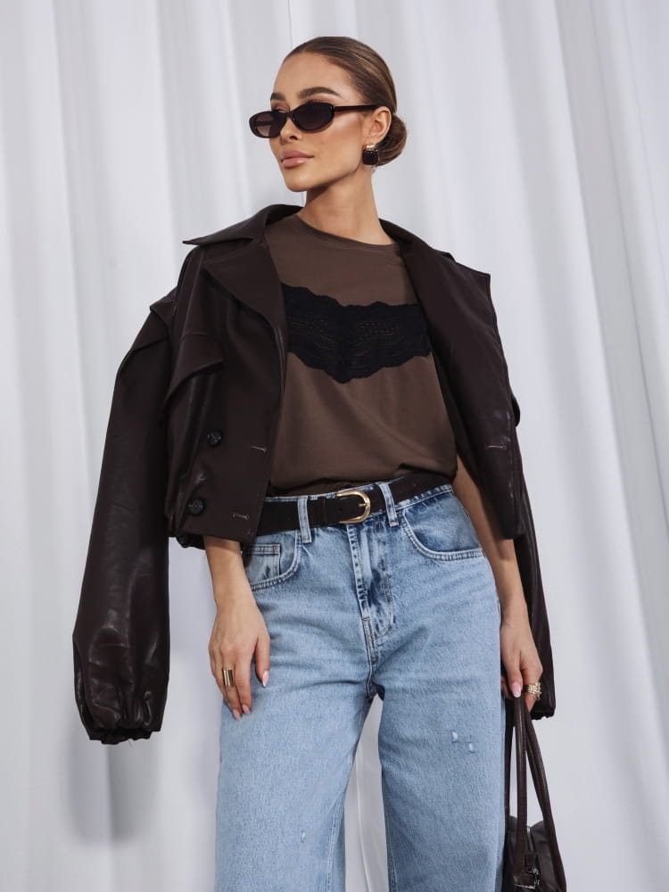 Klasyczny t-shirt z koronkowym akcentem.