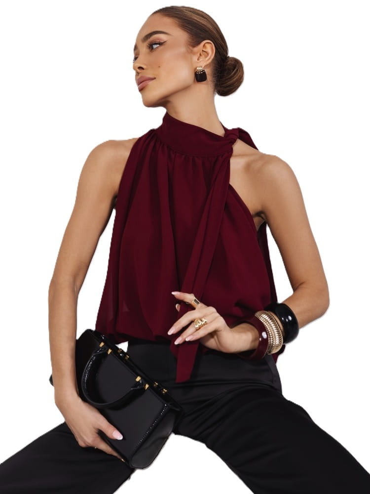 Stylowa i ponadczasowa bluzka damska bez rękawów, która doskonale łączy elegancję z nowoczesnym designem.