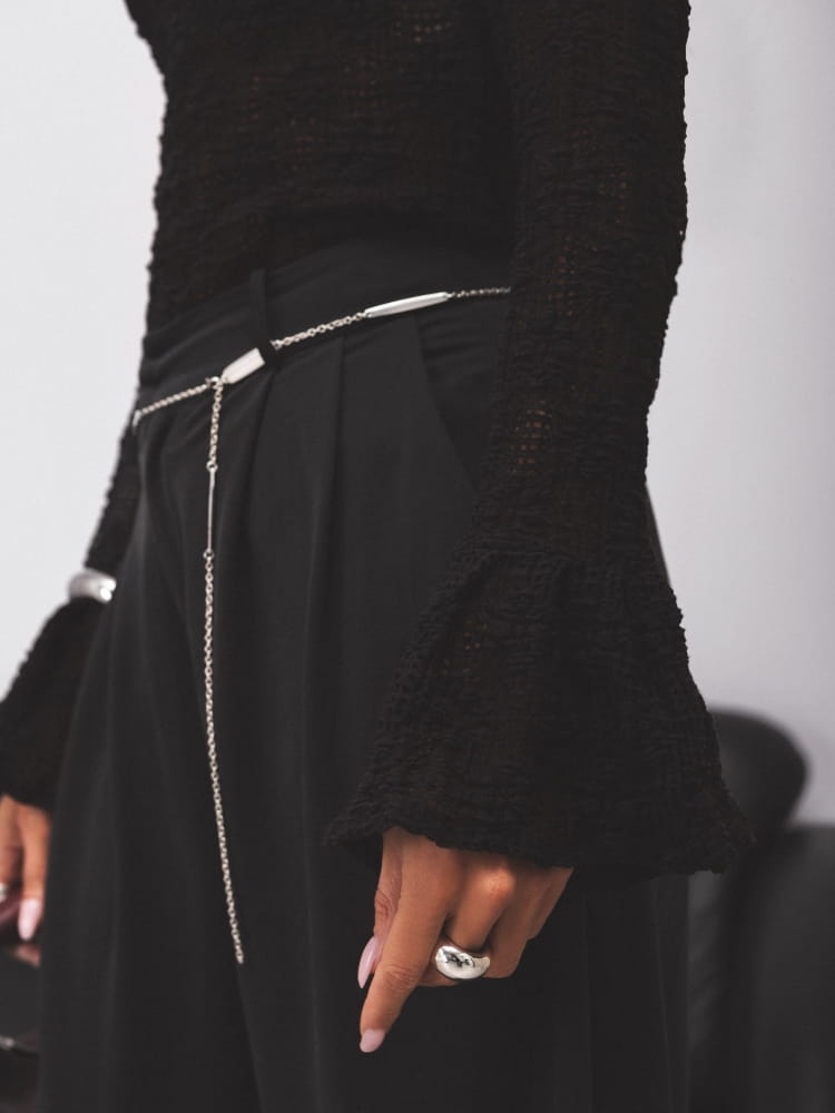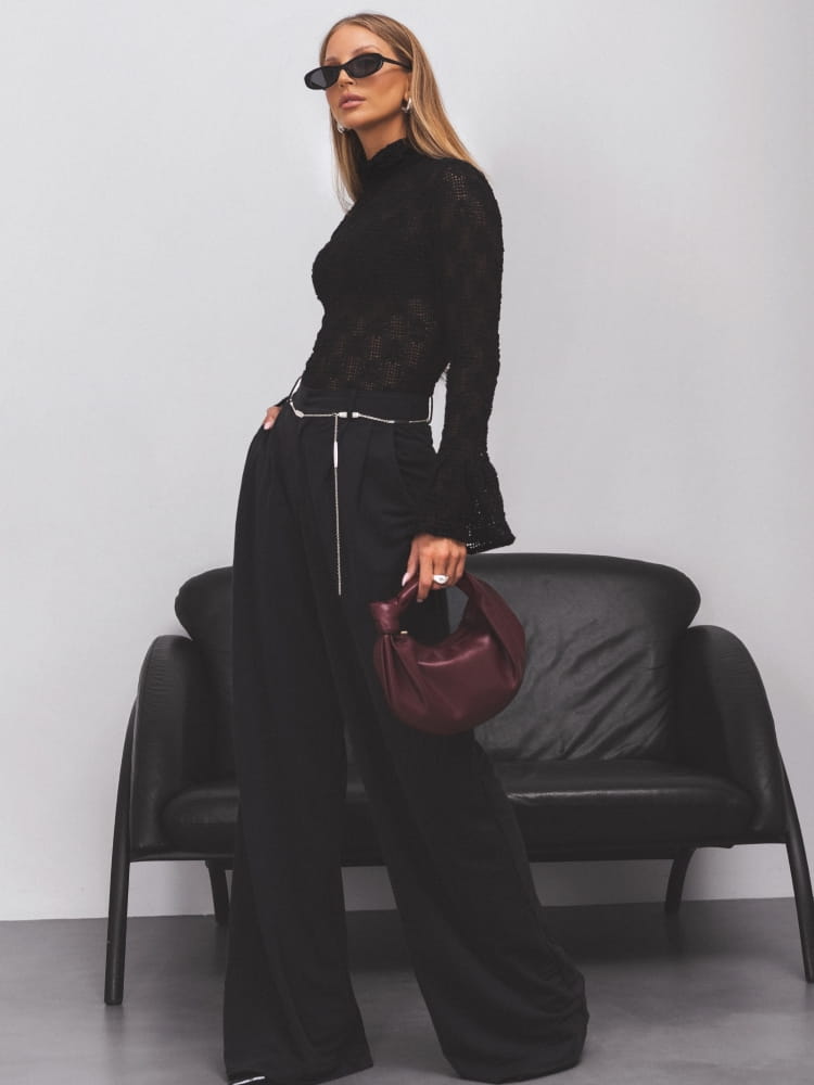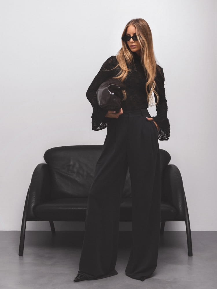 Bluzka świetnie prezentuje się w połączeniu ze spodniami z wysokim stanem, marynarką lub elegancką spódnicą – idealna do pracy, na spotkania, kolację czy specjalne okazje.