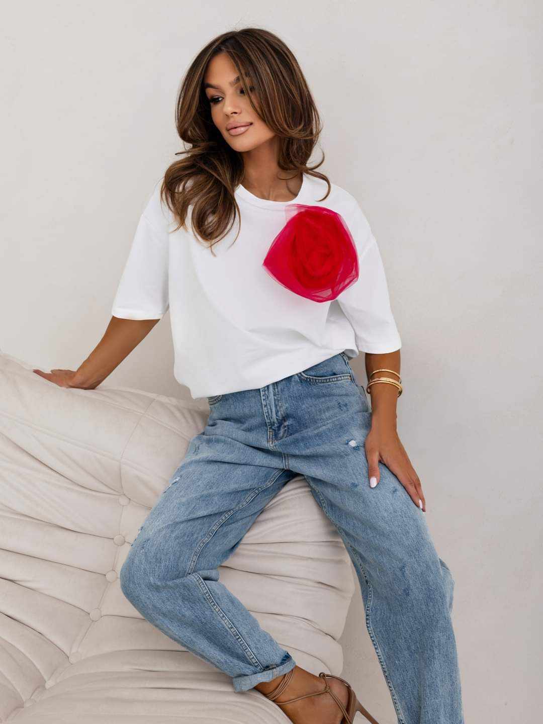 Cocomore damski T-shirt biały z różowym kwiatem (1)
