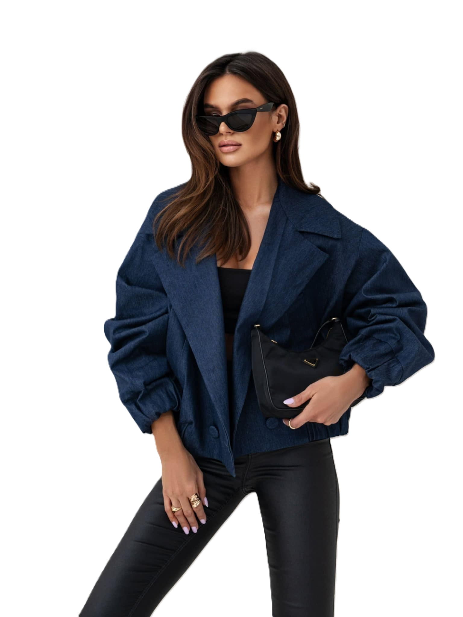 Model o luźnym kroju z modnymi rękawami i szerokimi klapami to must-have w każdej garderobie.
