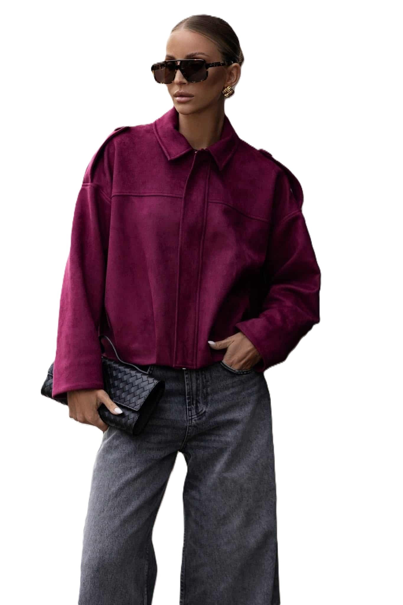 Elegancka kurtka zamszowa w kolorze bordowym – Polski design i komfort.