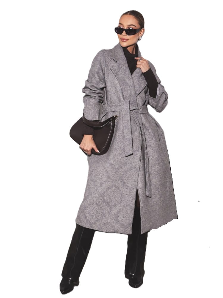 Cocomore płaszcz damski zimowy szary na wiązanie długi