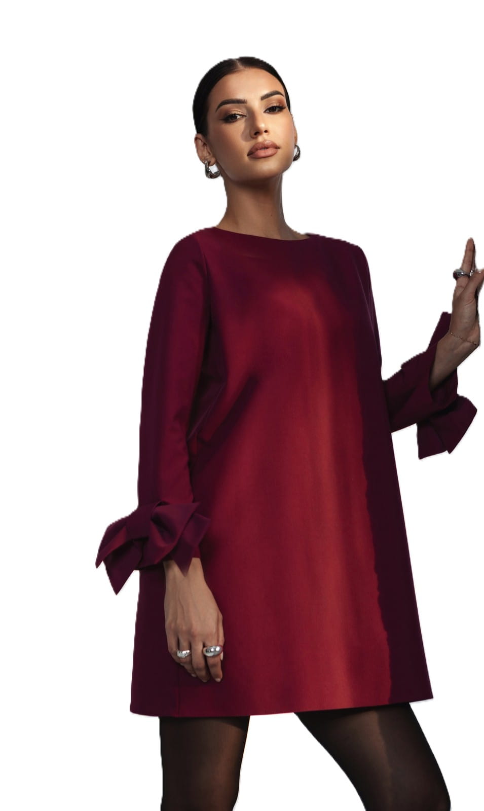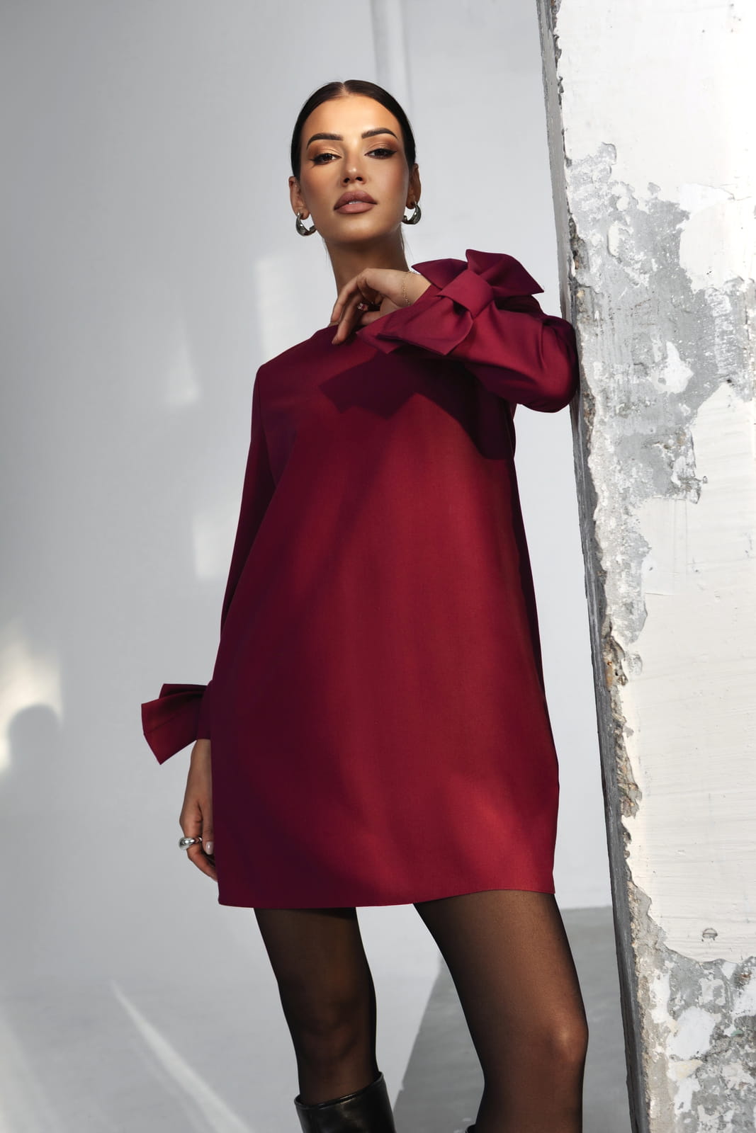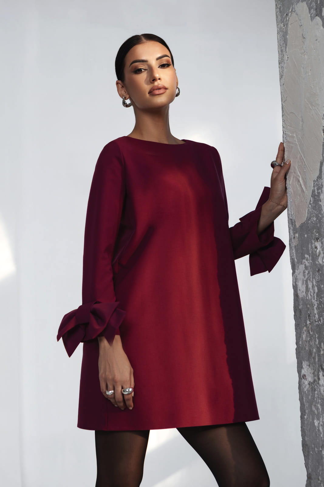 Elegancka bordowa sukienka mini z długim rękawem – polski producent