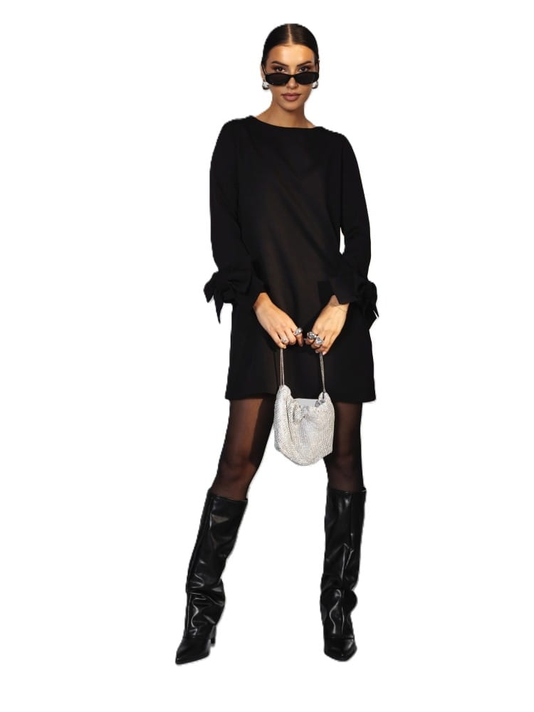 Elegancka czarna sukienka mini z długim rękawem – polski producent