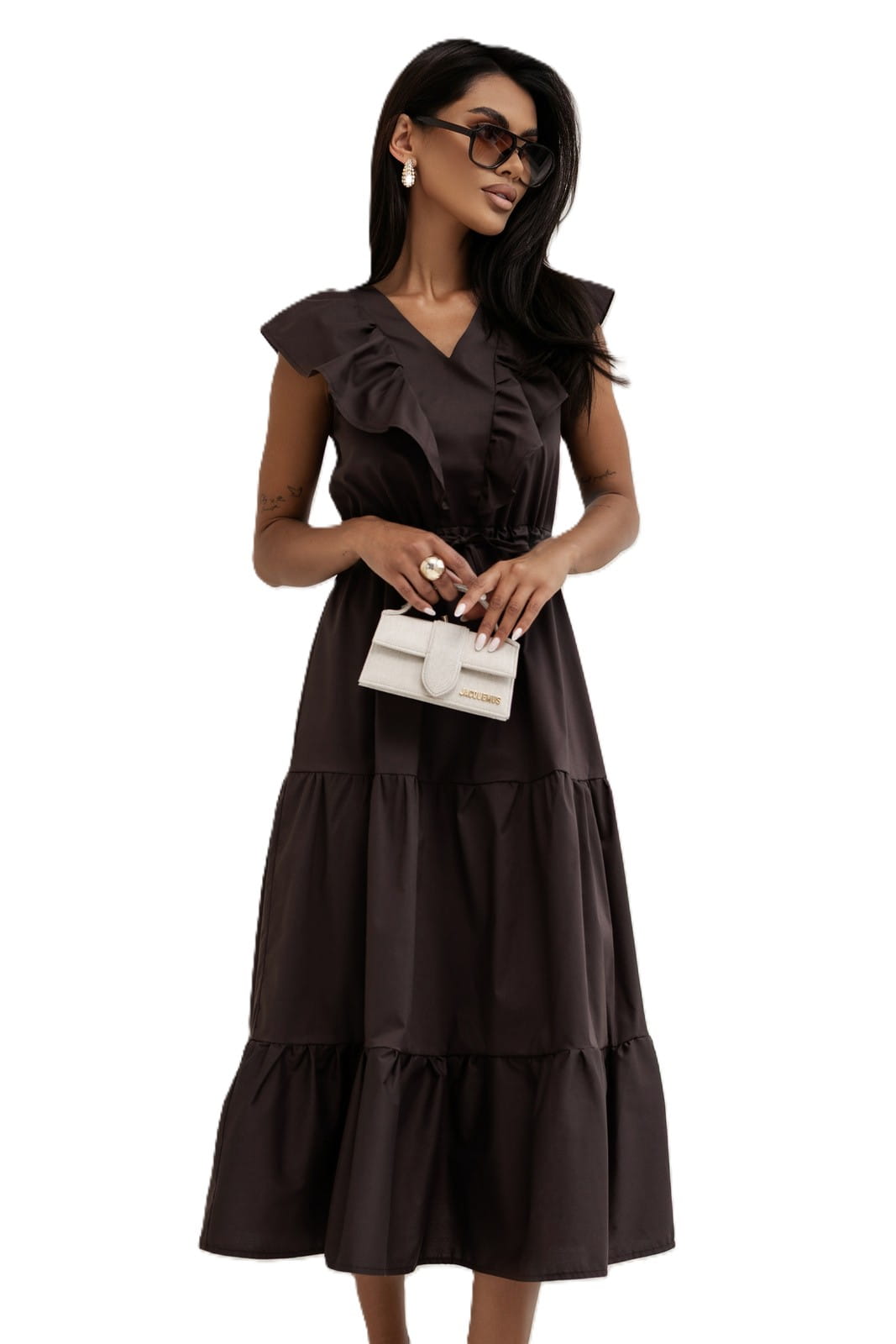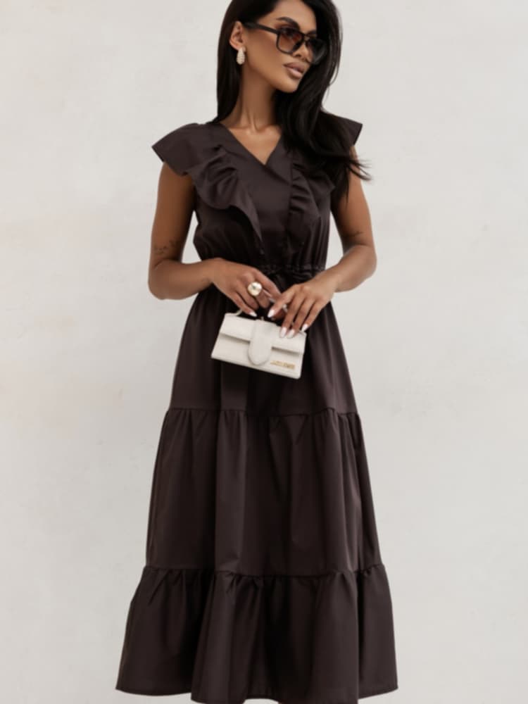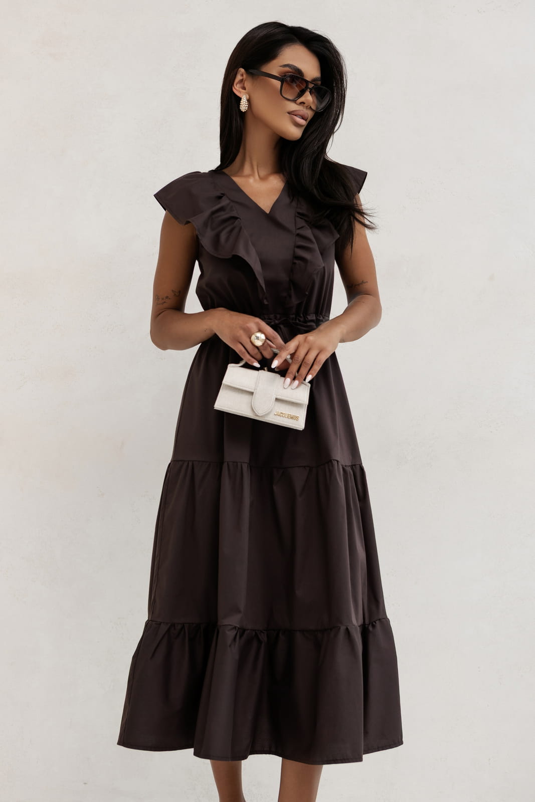 Sukienka midi Kaya – romantyczna elegancja w czekoladowym odcieniu.