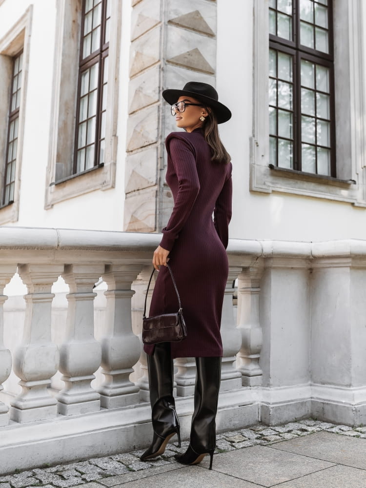 Bordowa sukienka midi, która łączy wygodę z elegancją.