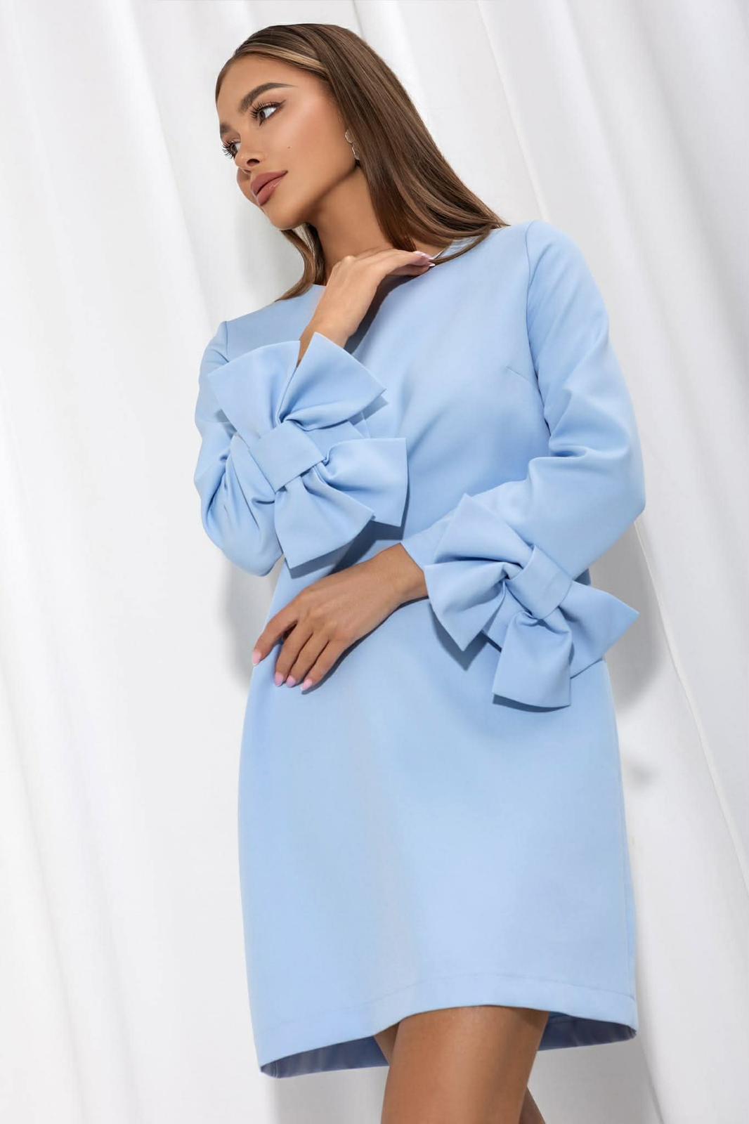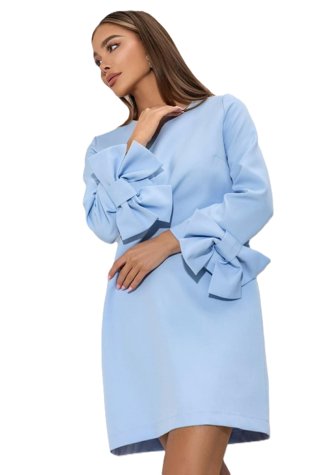 Elegancka niebieska sukienka mini z długim rękawem – polski producent
