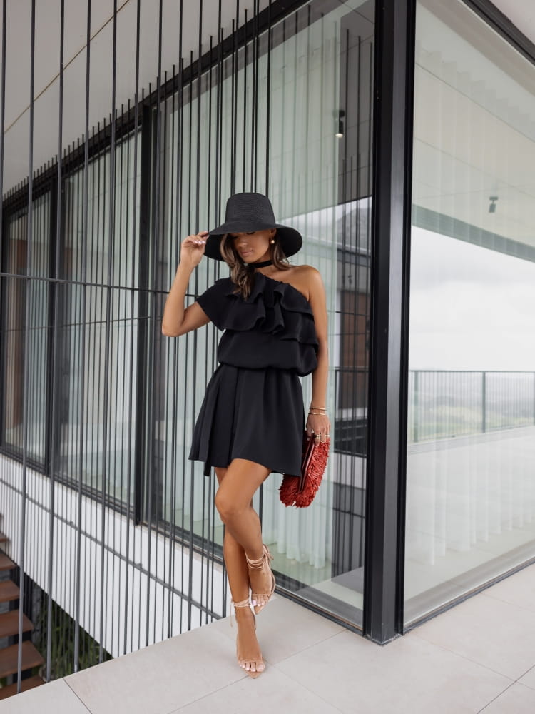 Wprowadź do swojej garderoby odrobinę elegancji i wyjątkowego stylu dzięki naszej sukience z falbanami na jedno ramię, wyprodukowanej w Polsce.