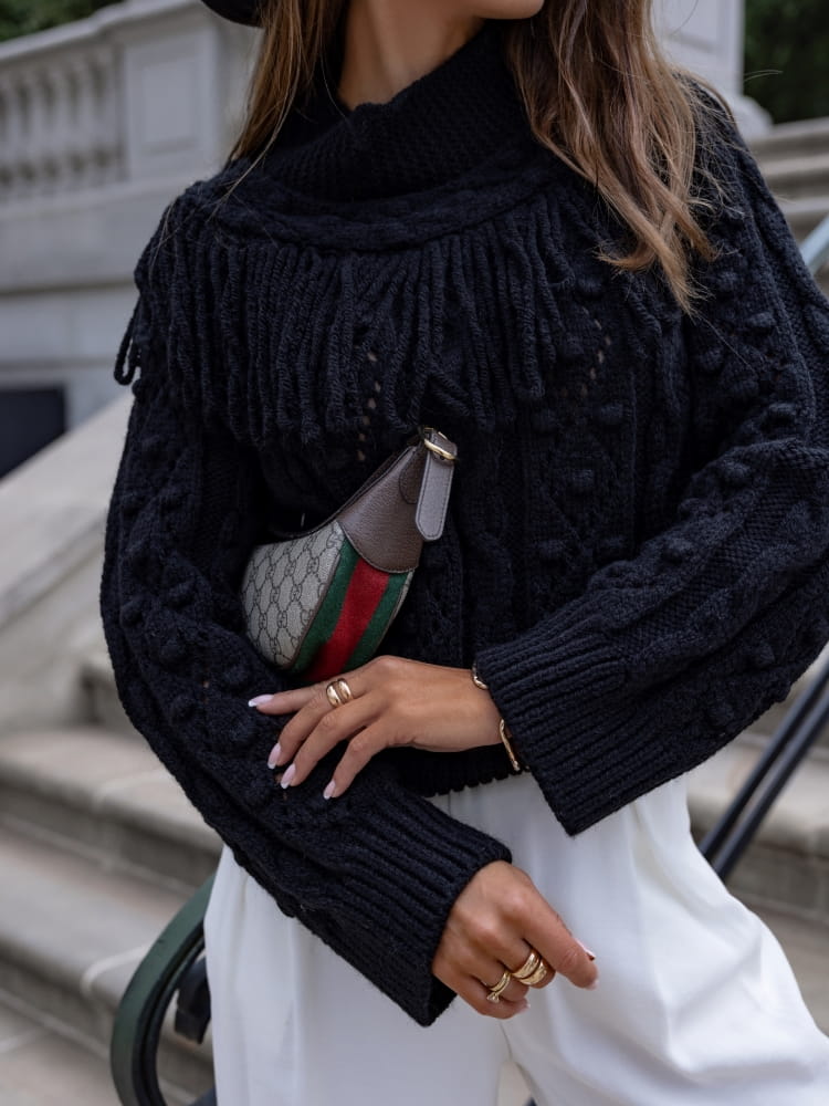 Model wyróżnia się półgolfem oraz ozdobnymi frędzlami zarówno z przodu, jak i z tyłu.