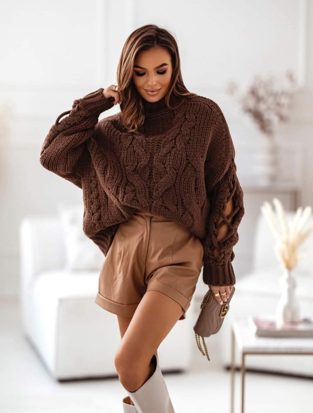 Sweter o splocie warkocz to elegancki element garderoby.