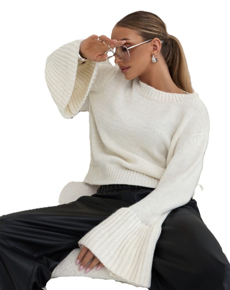 Klasyczny sweter z modnym akcentem-rękaw typu dzwonek.