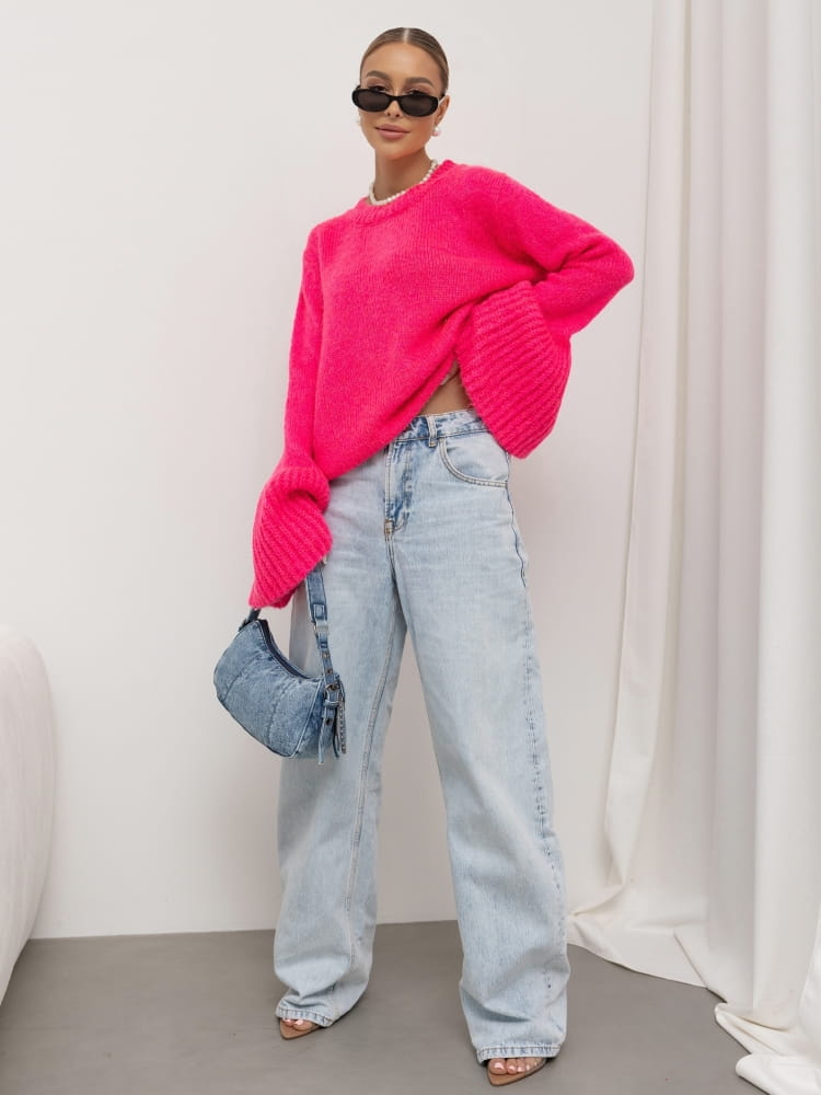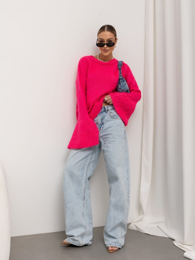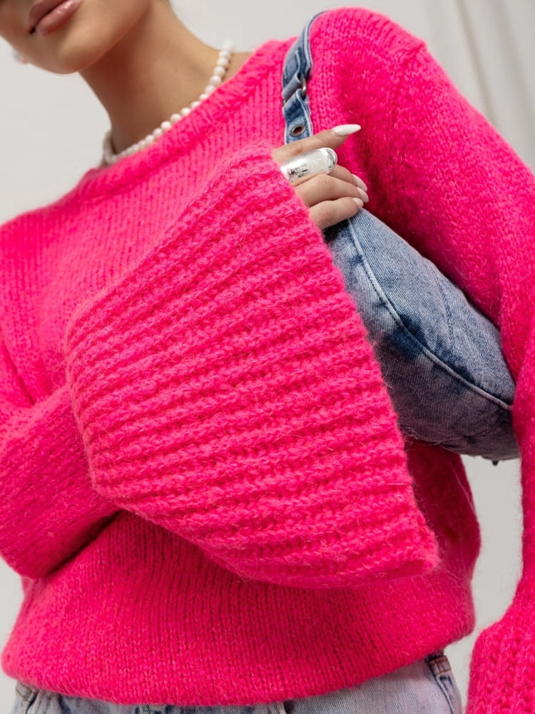 Cocomore sweter damski fuksja rękaw typu dzwonek
