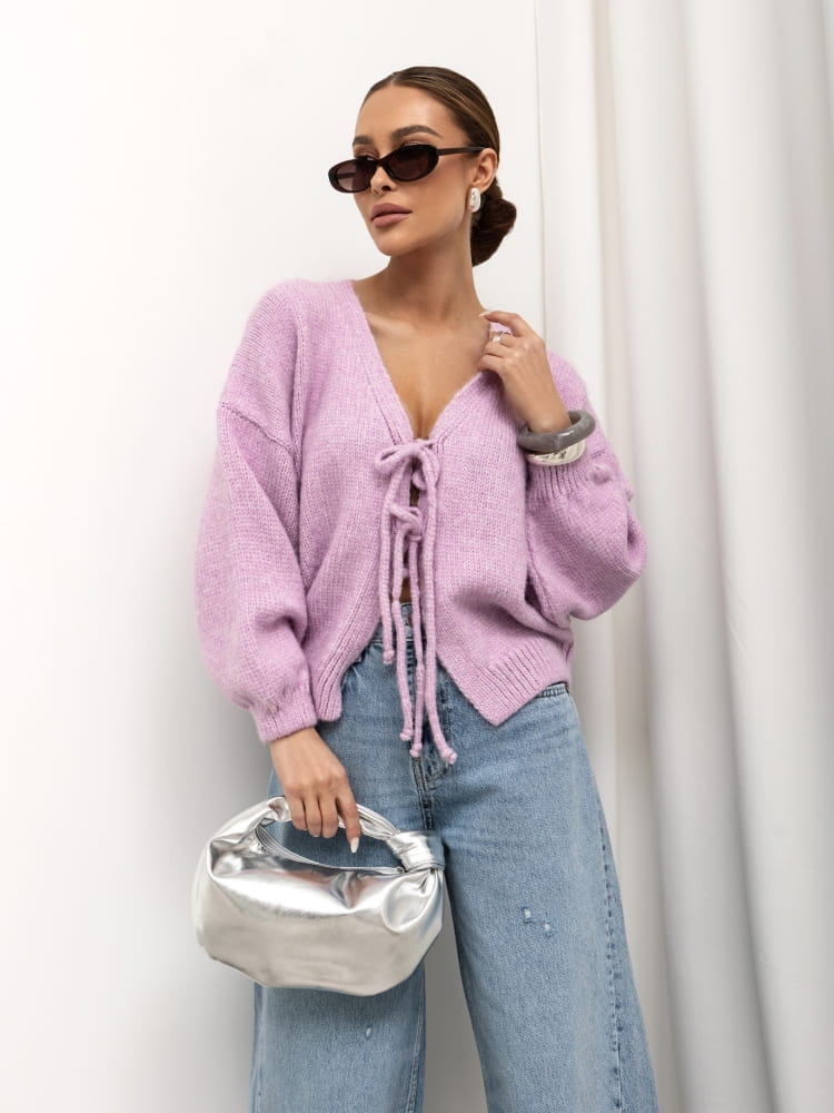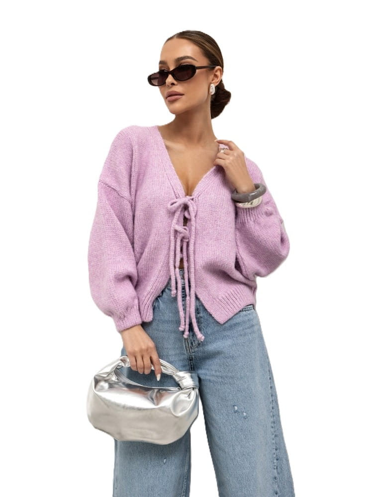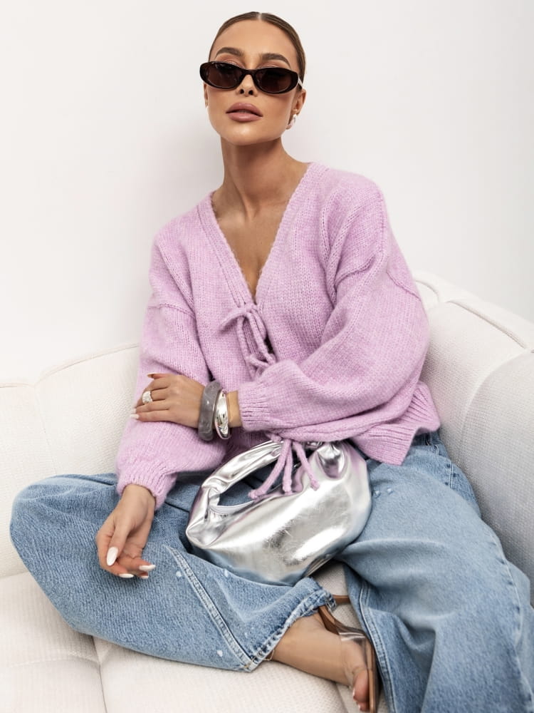 Cocomore sweter damski kardigan fioletowy na wiązanie
