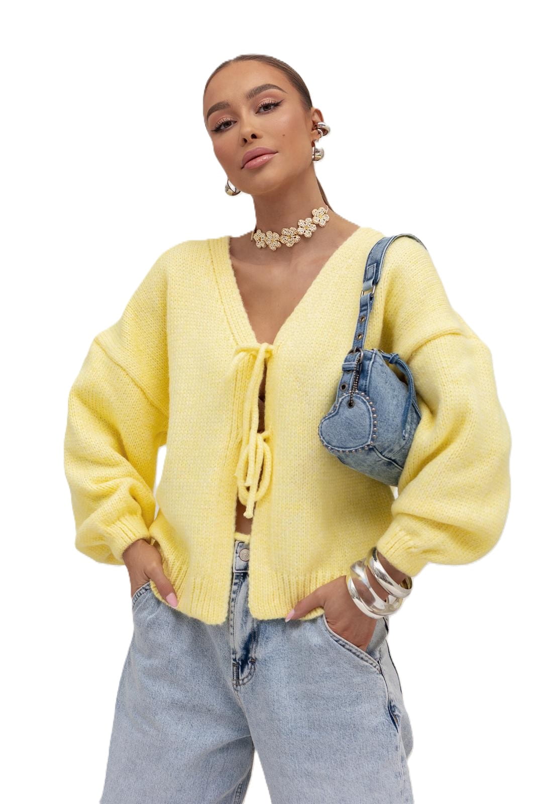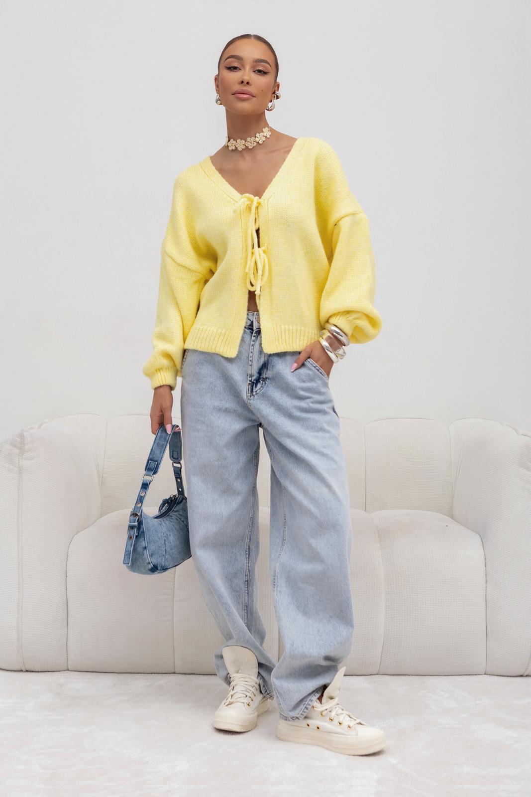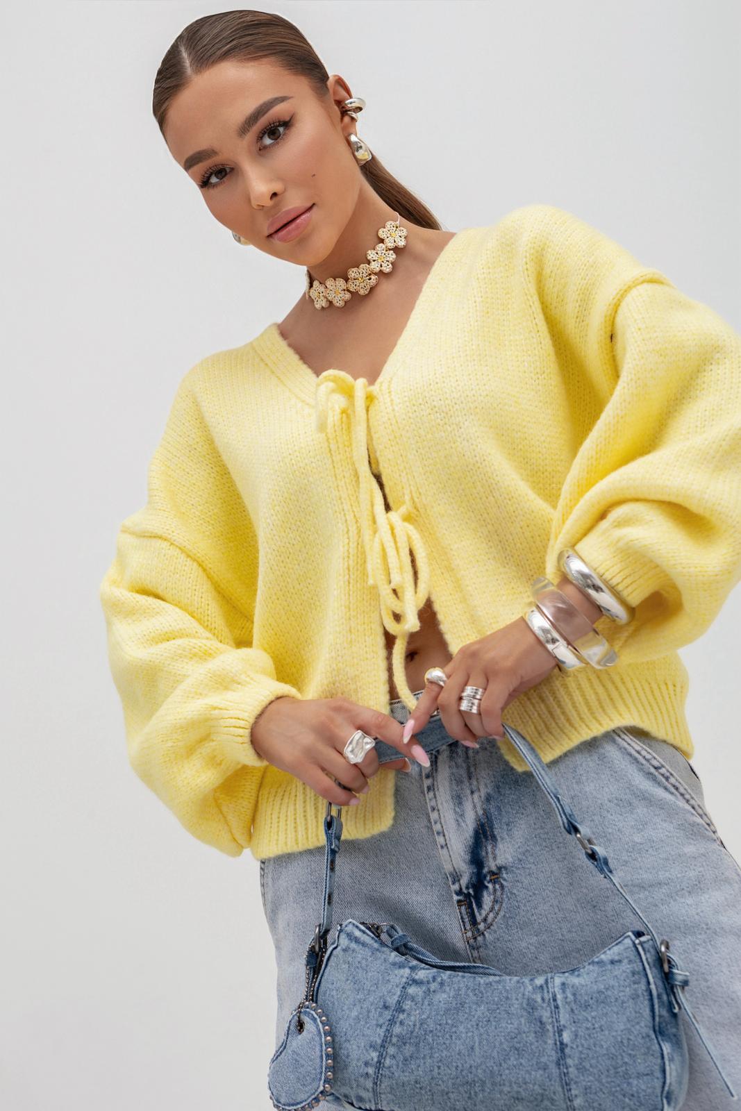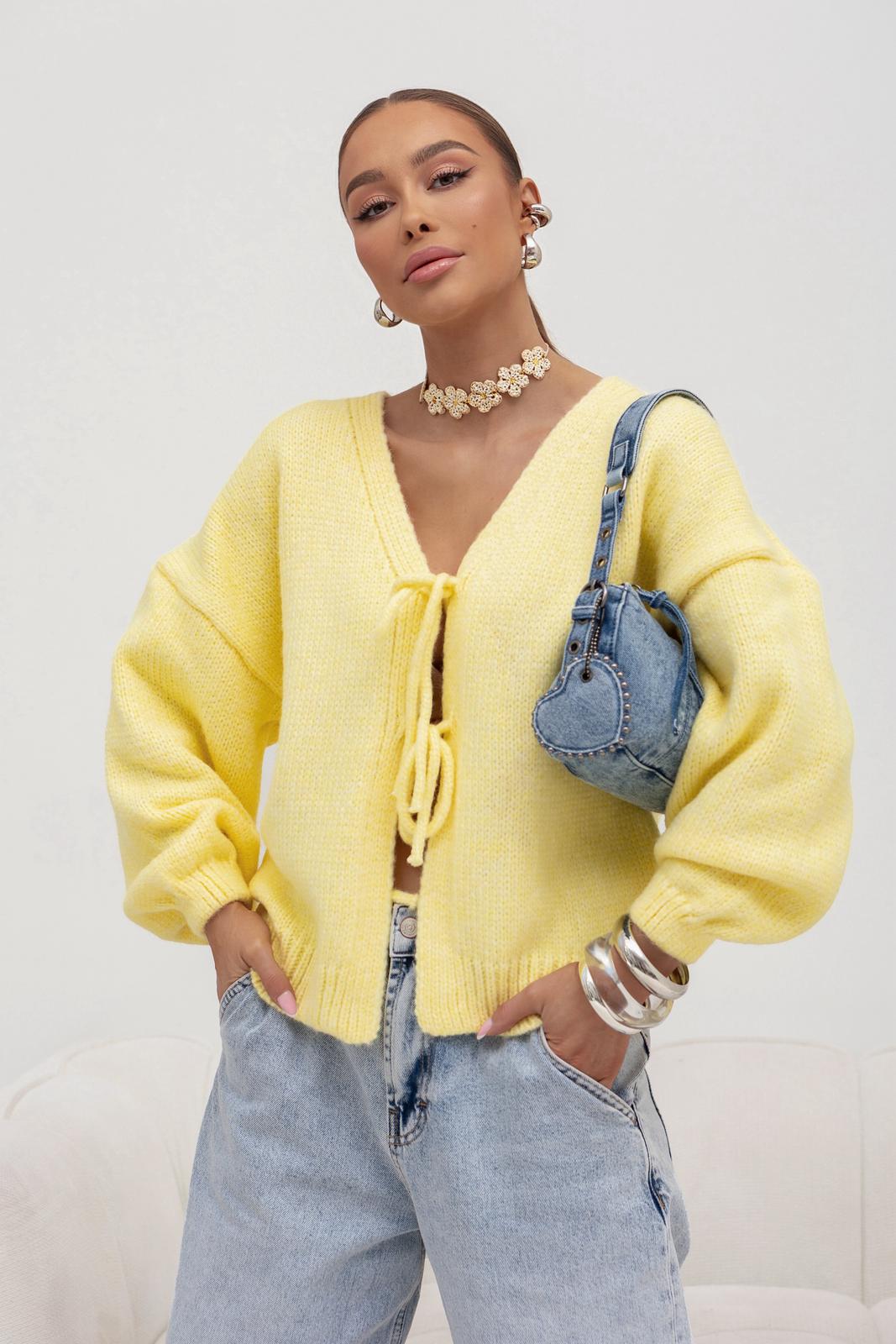 Cocomore sweter damski kardigan krótki żółty na wiązanie