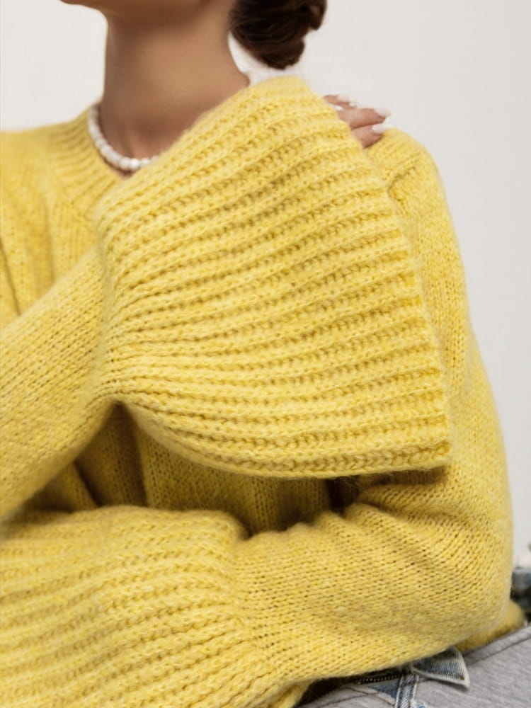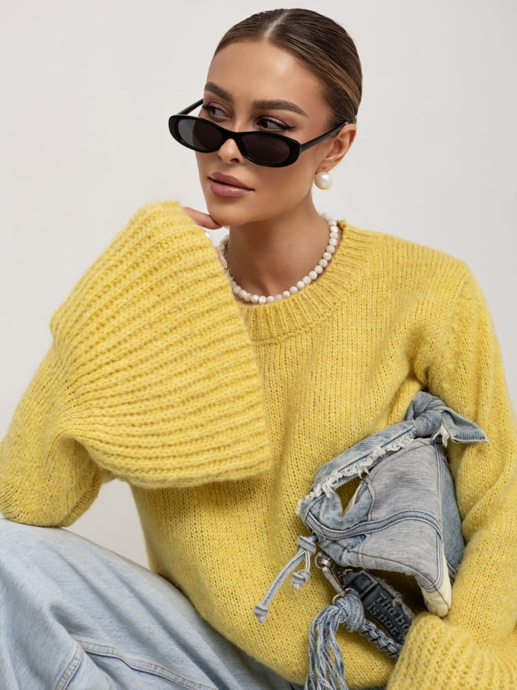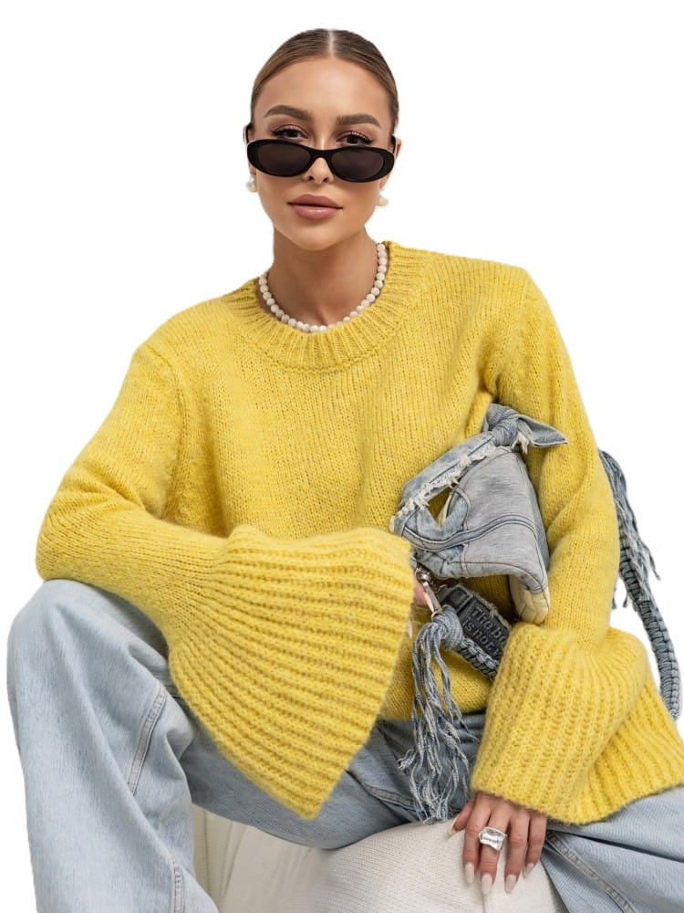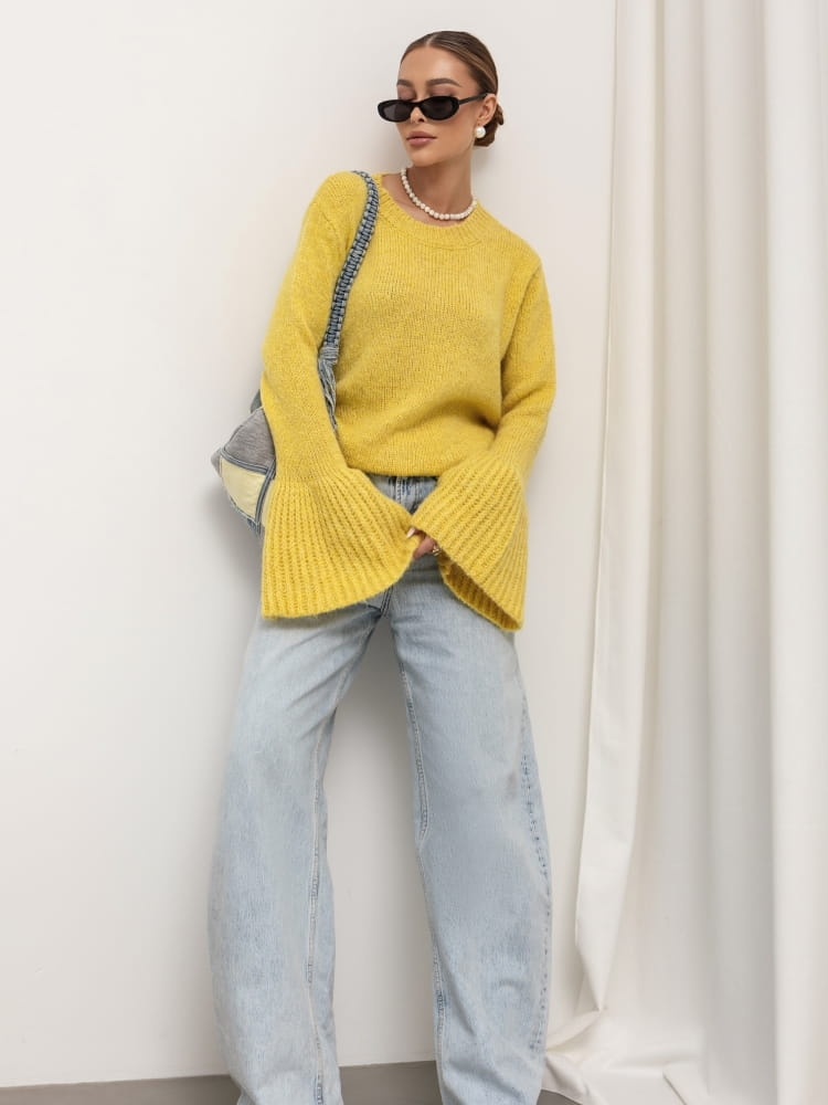 Cocomore sweter damski żółty rękaw typu dzwonek