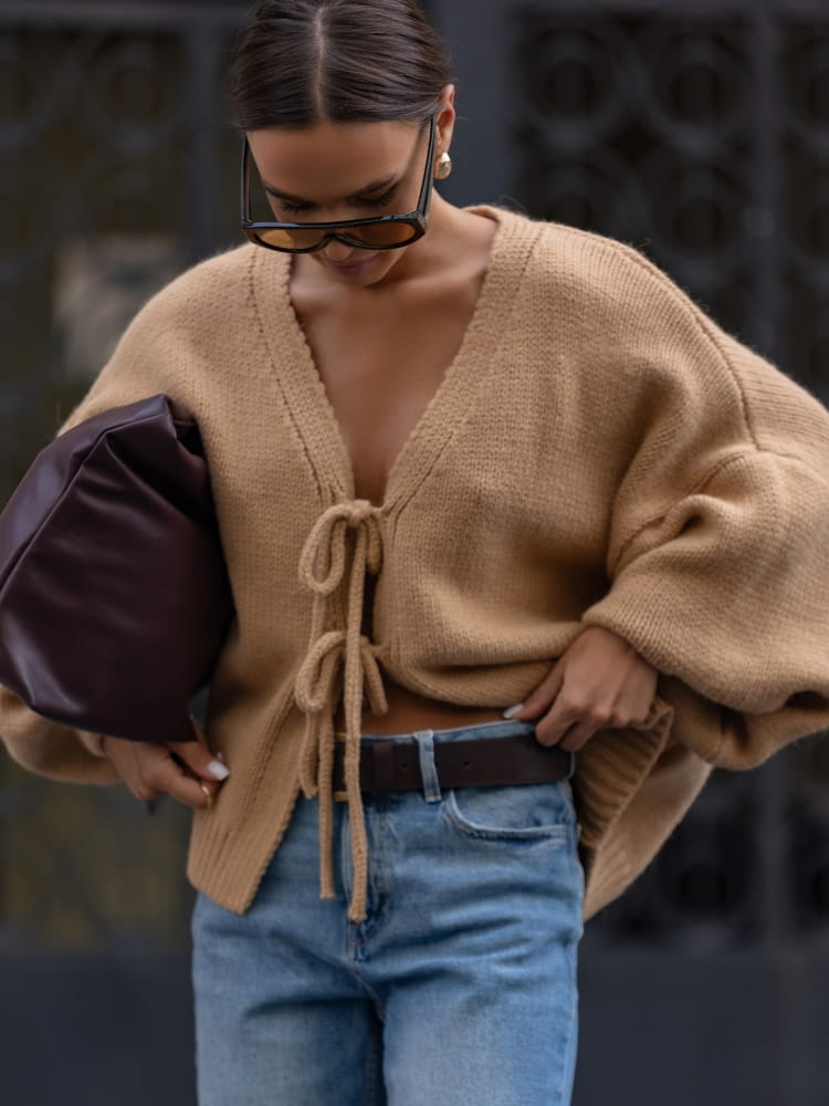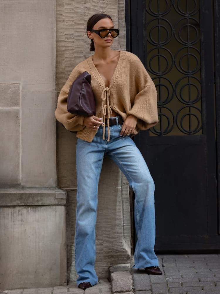 - Fason: krótki, oversize kardigan damski
