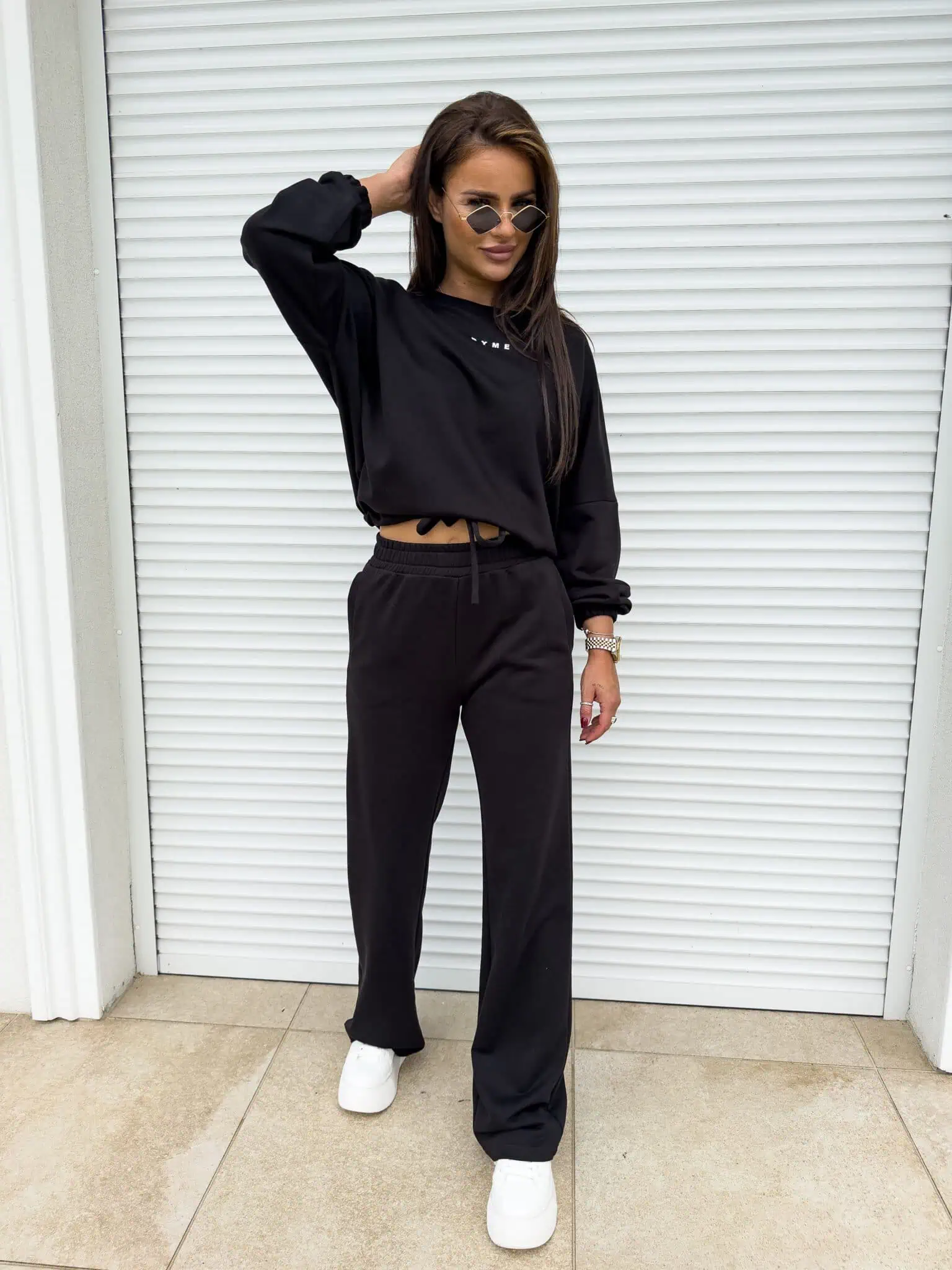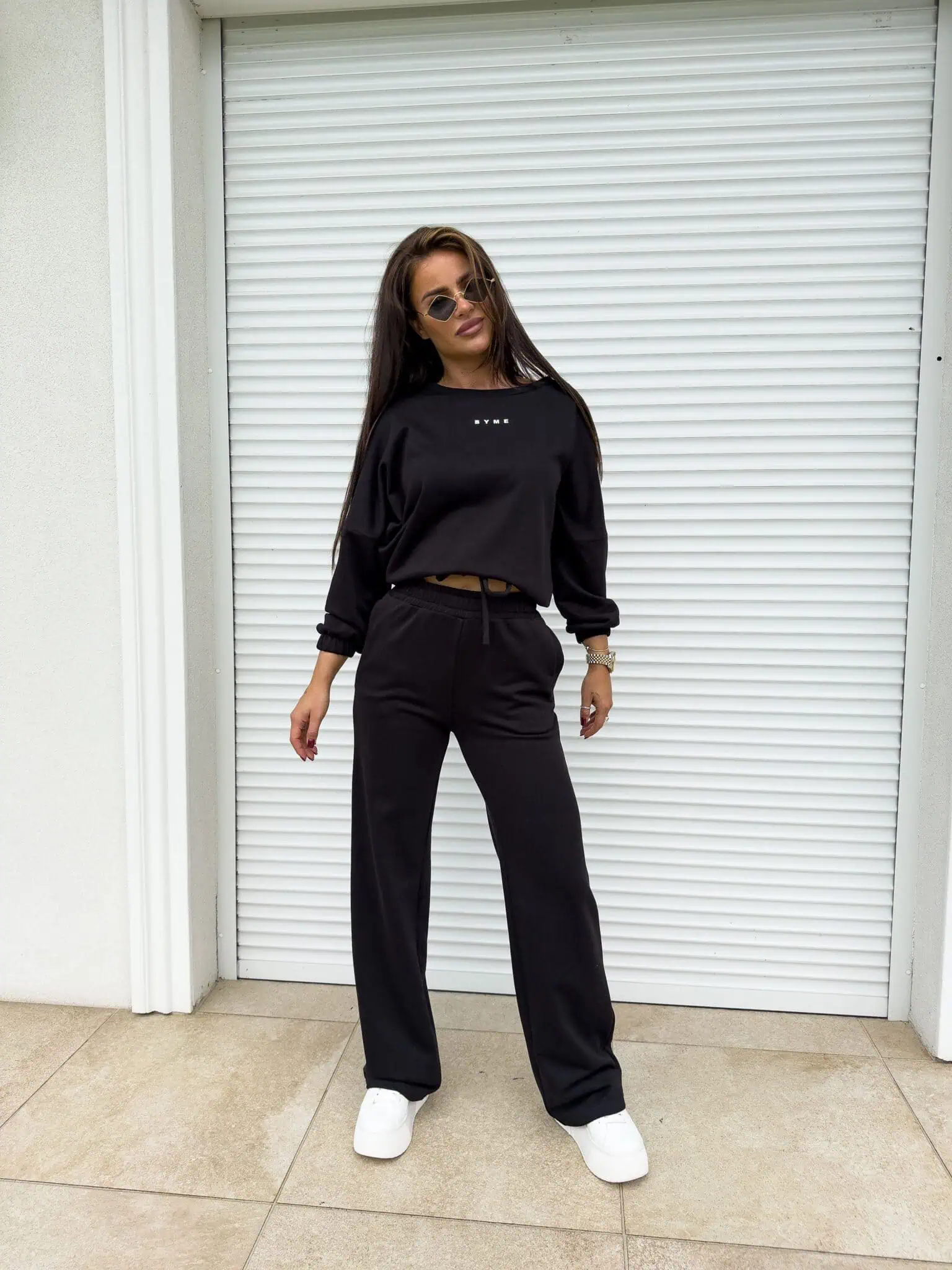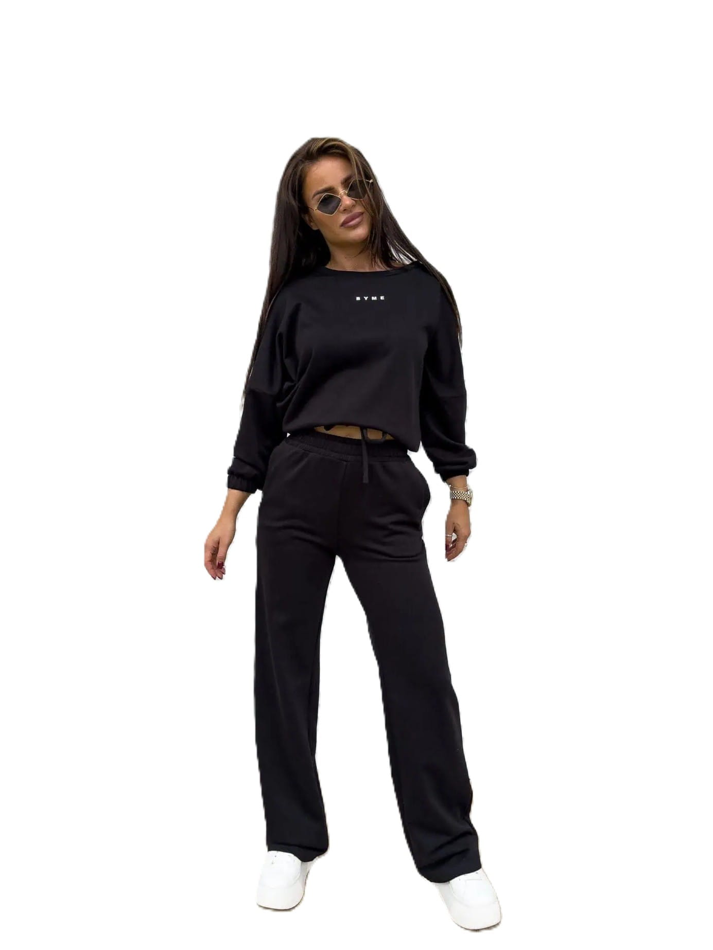 Czarny dres damski spodnie szerokie bluza By Me
