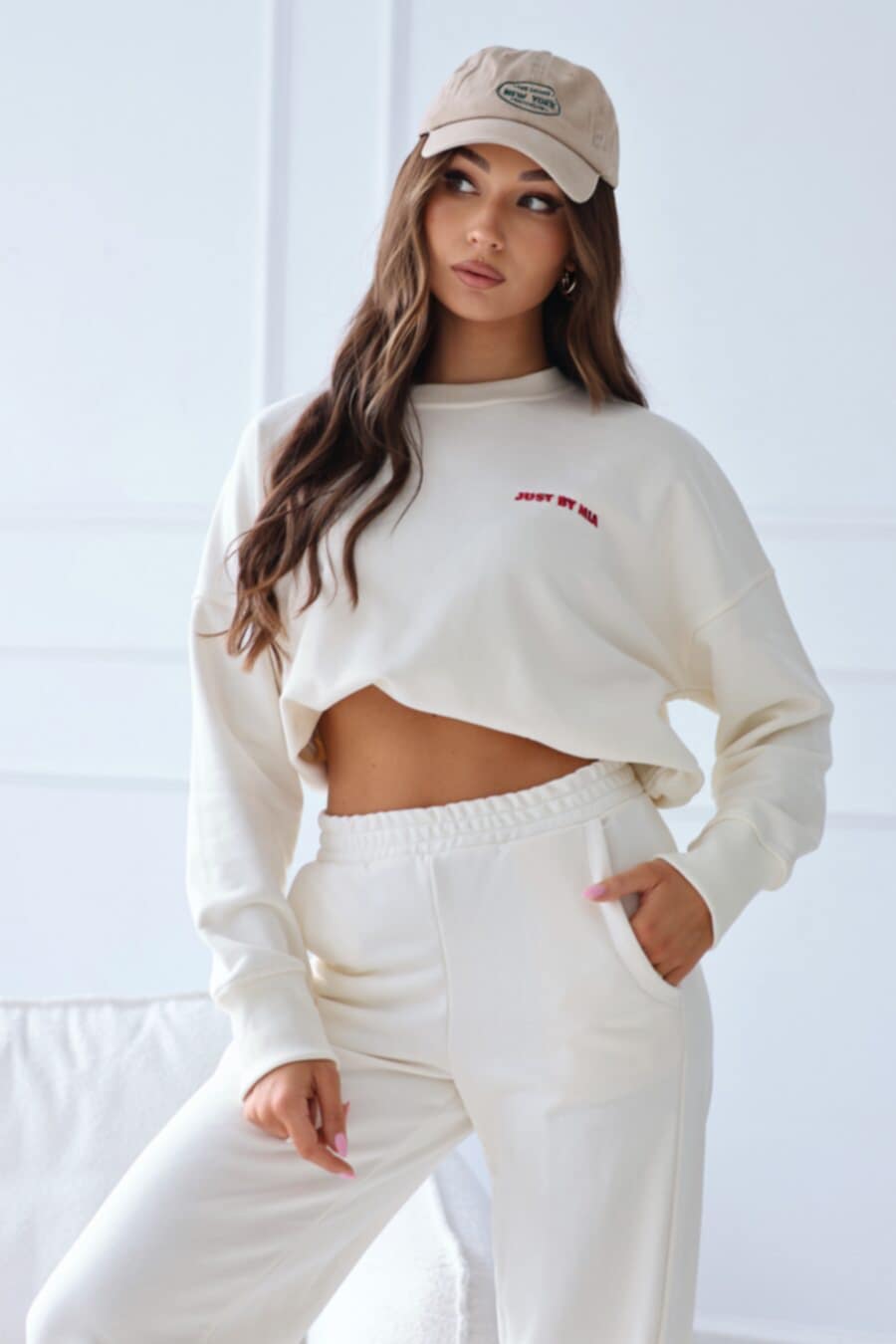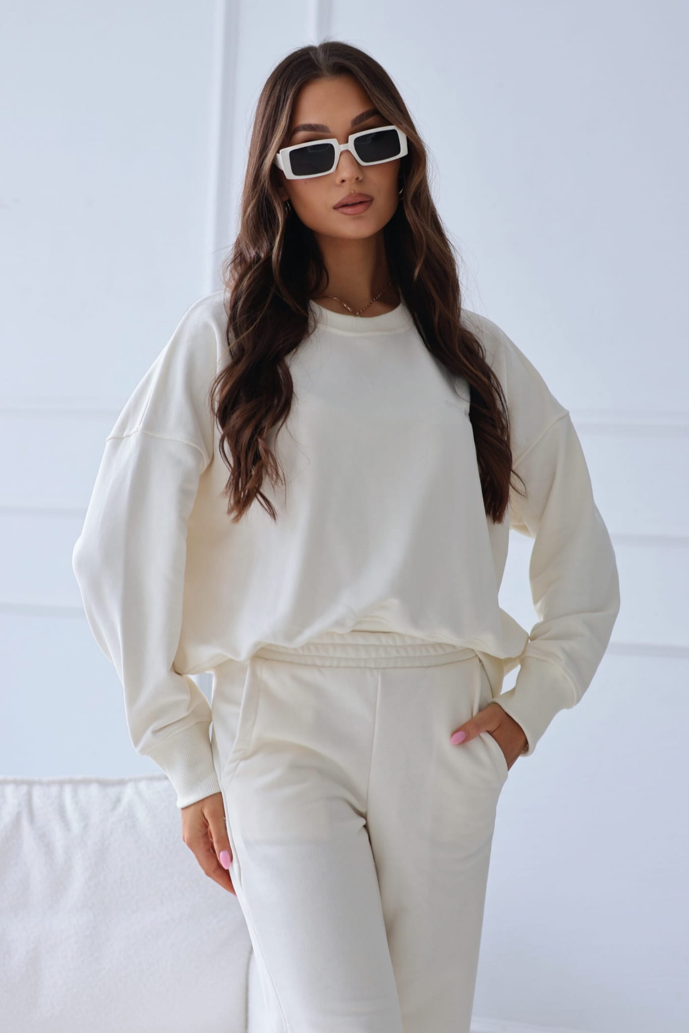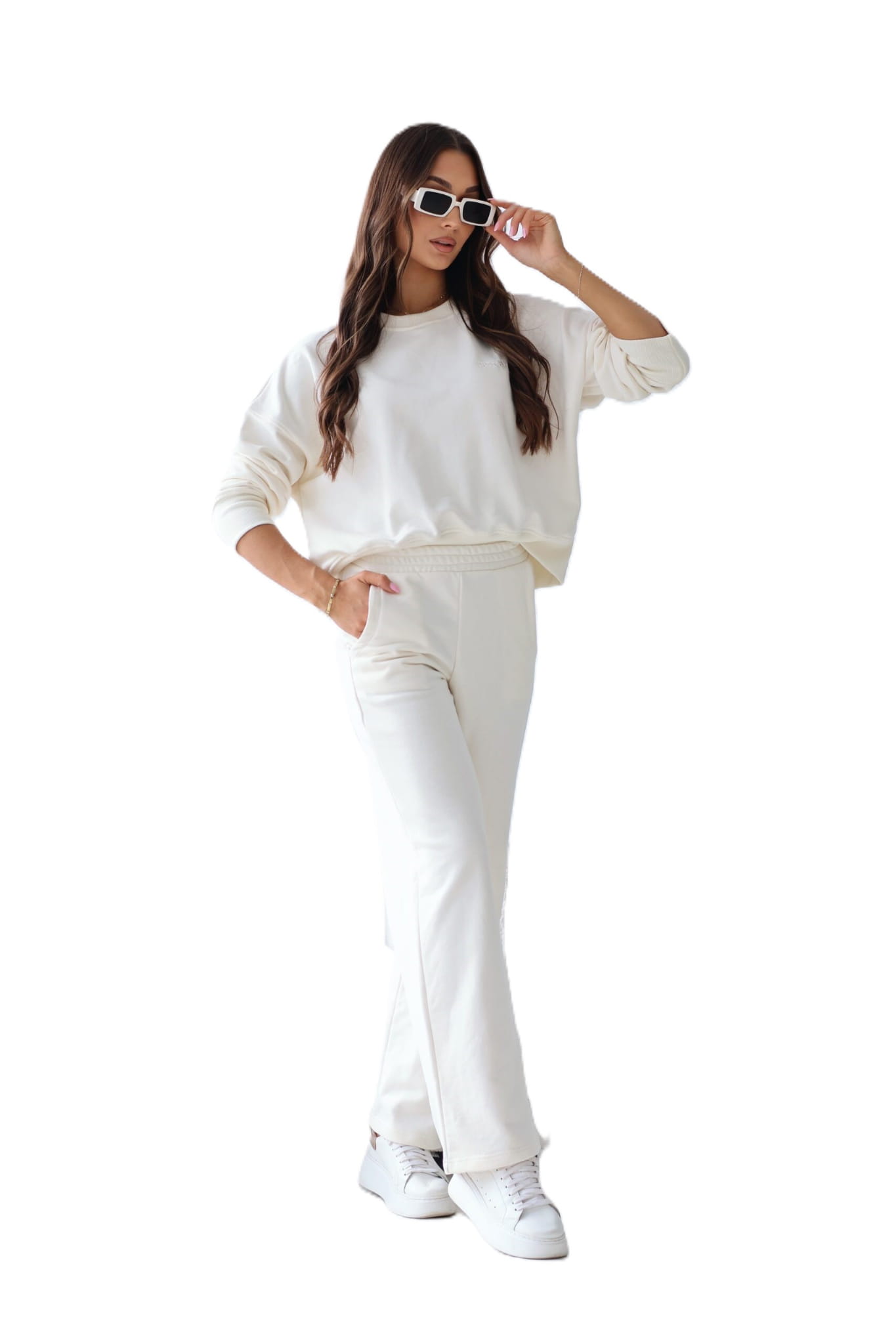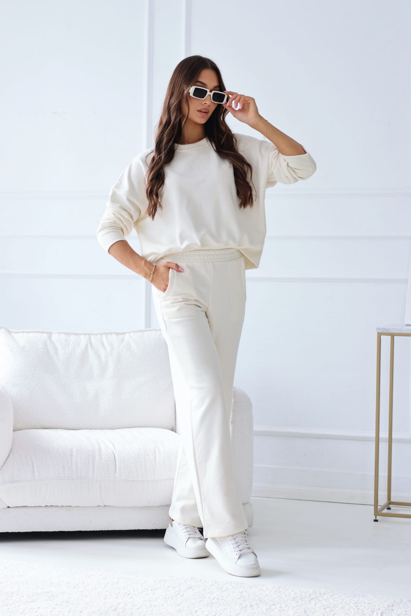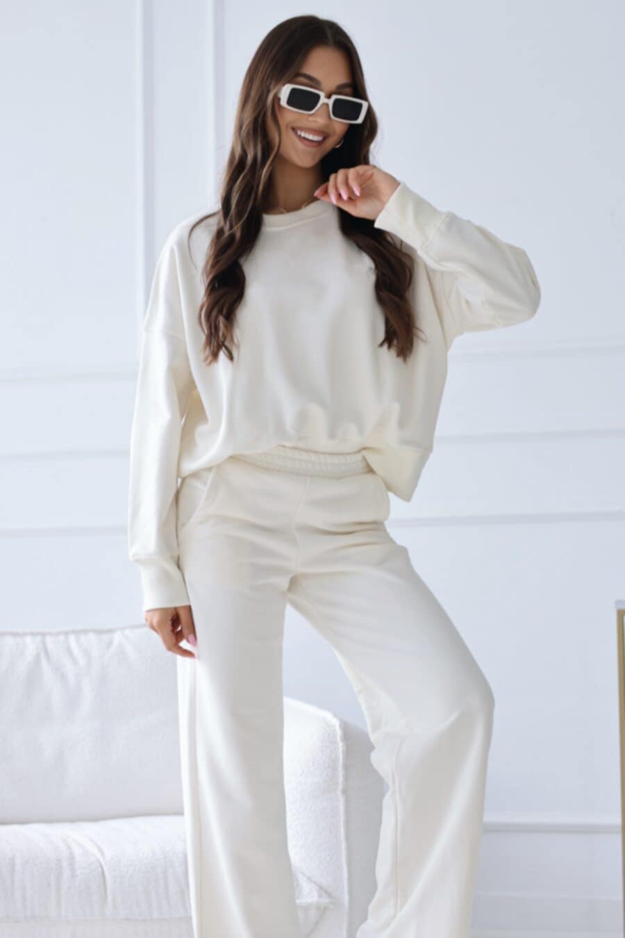Dres damski bawełniany bluza i szerokie spodnie -Ecru