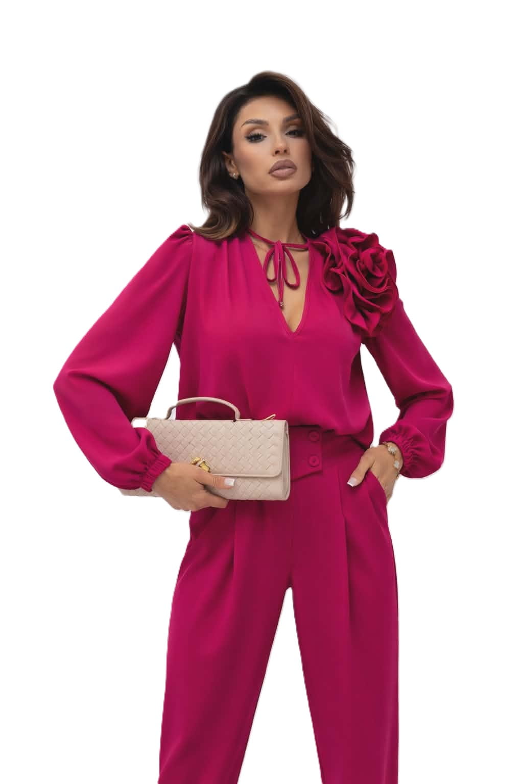 Elegancka bluzka damska Rose fuksja kwiat na ramieniu