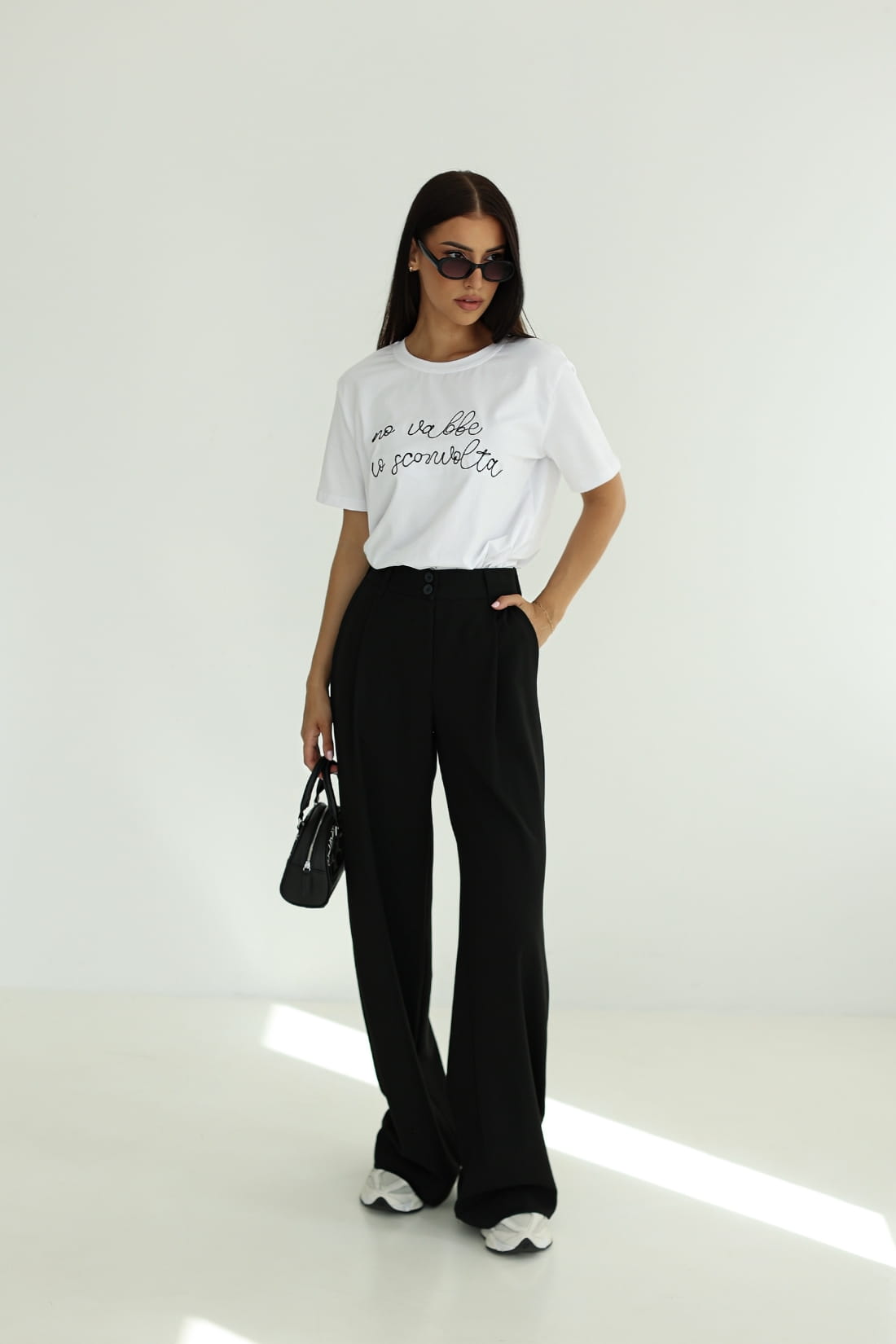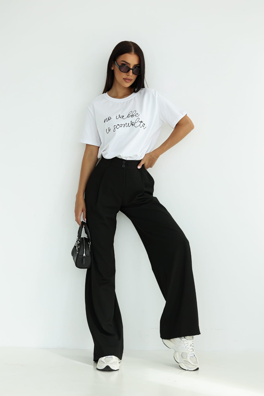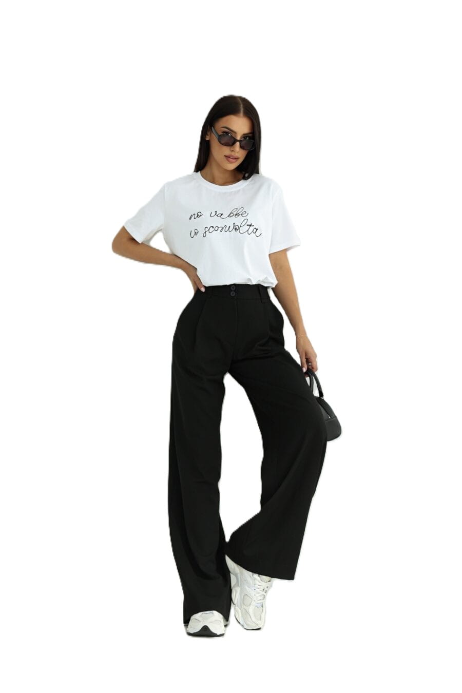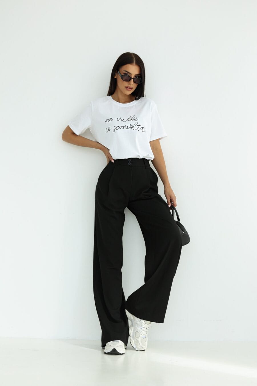 Eleganckie spodnie damskie wide leg z wysokim stanem – kolor czarny.