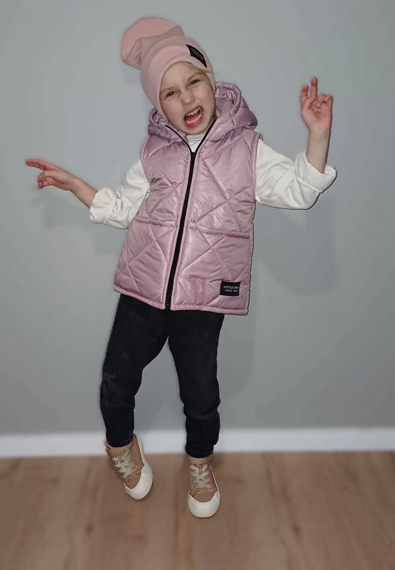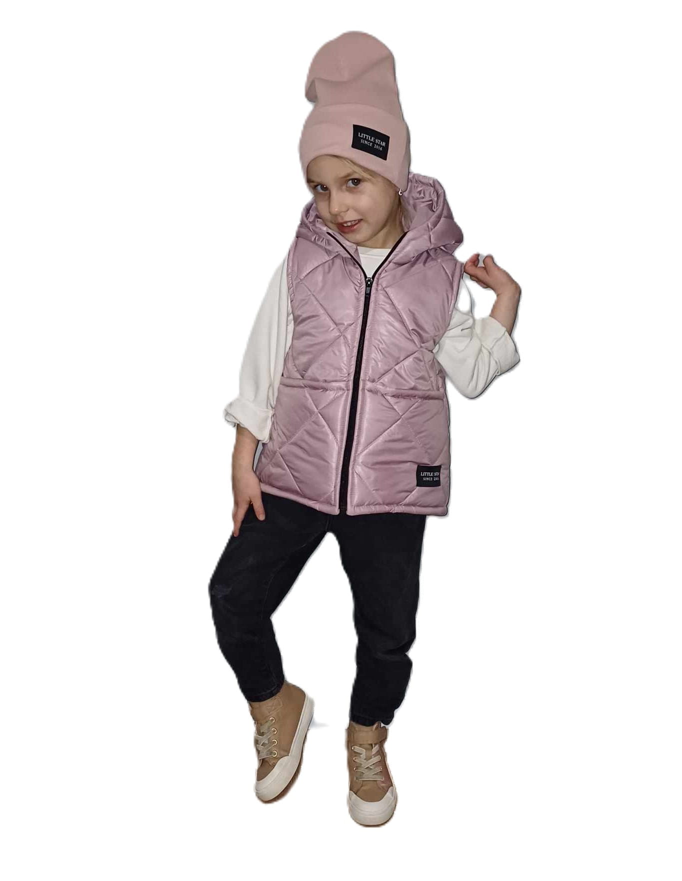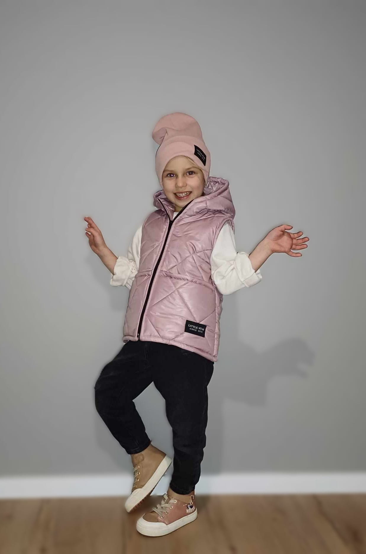 Urocza kamizelka dziecięca w odcieniu różowym.