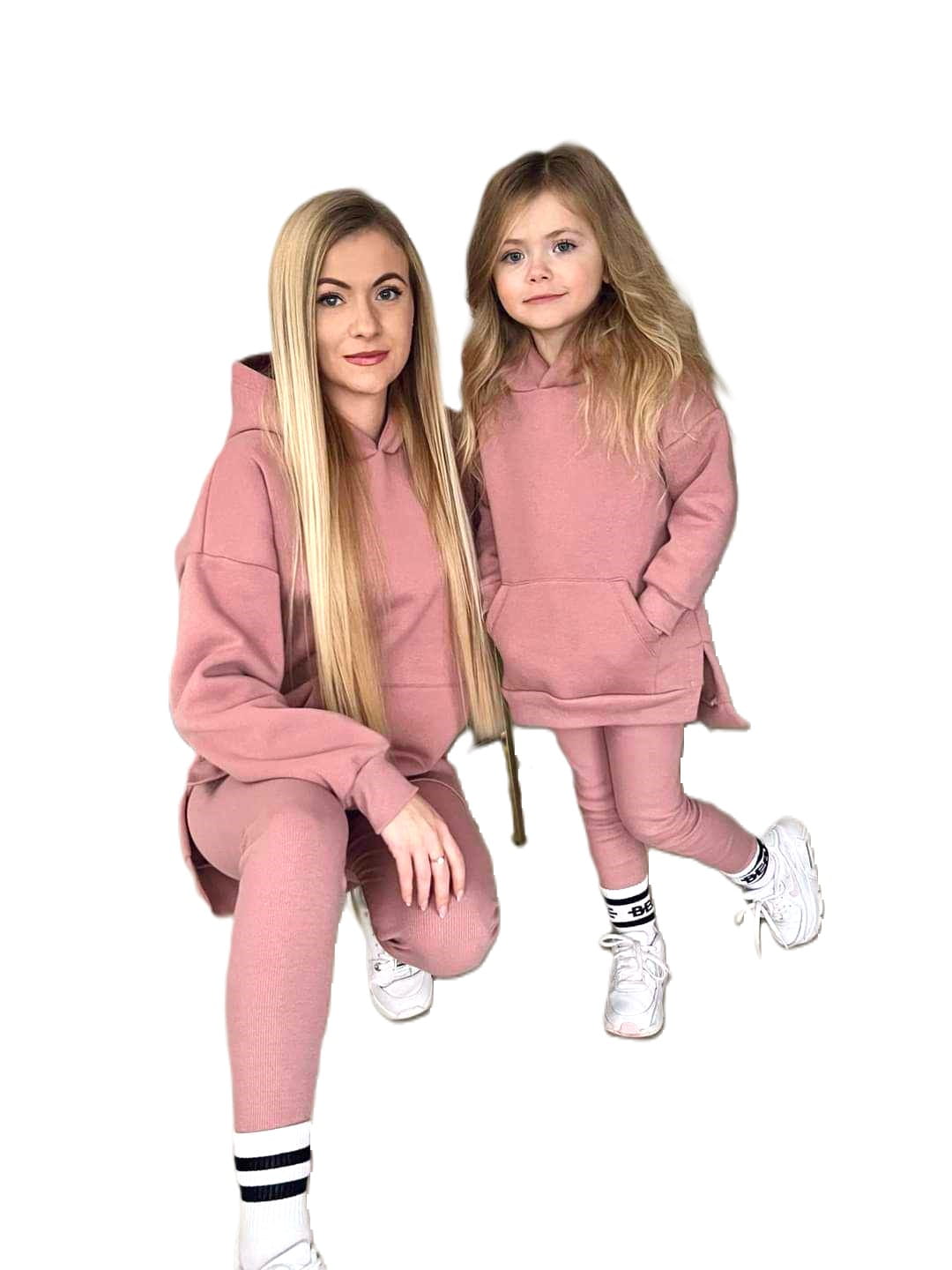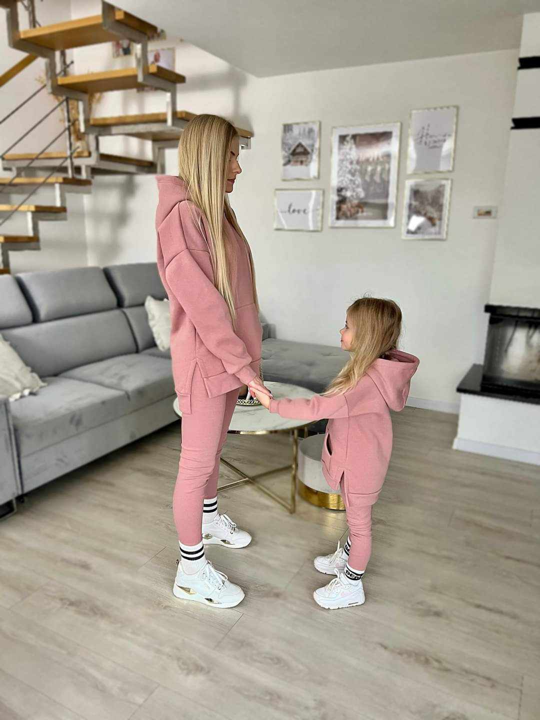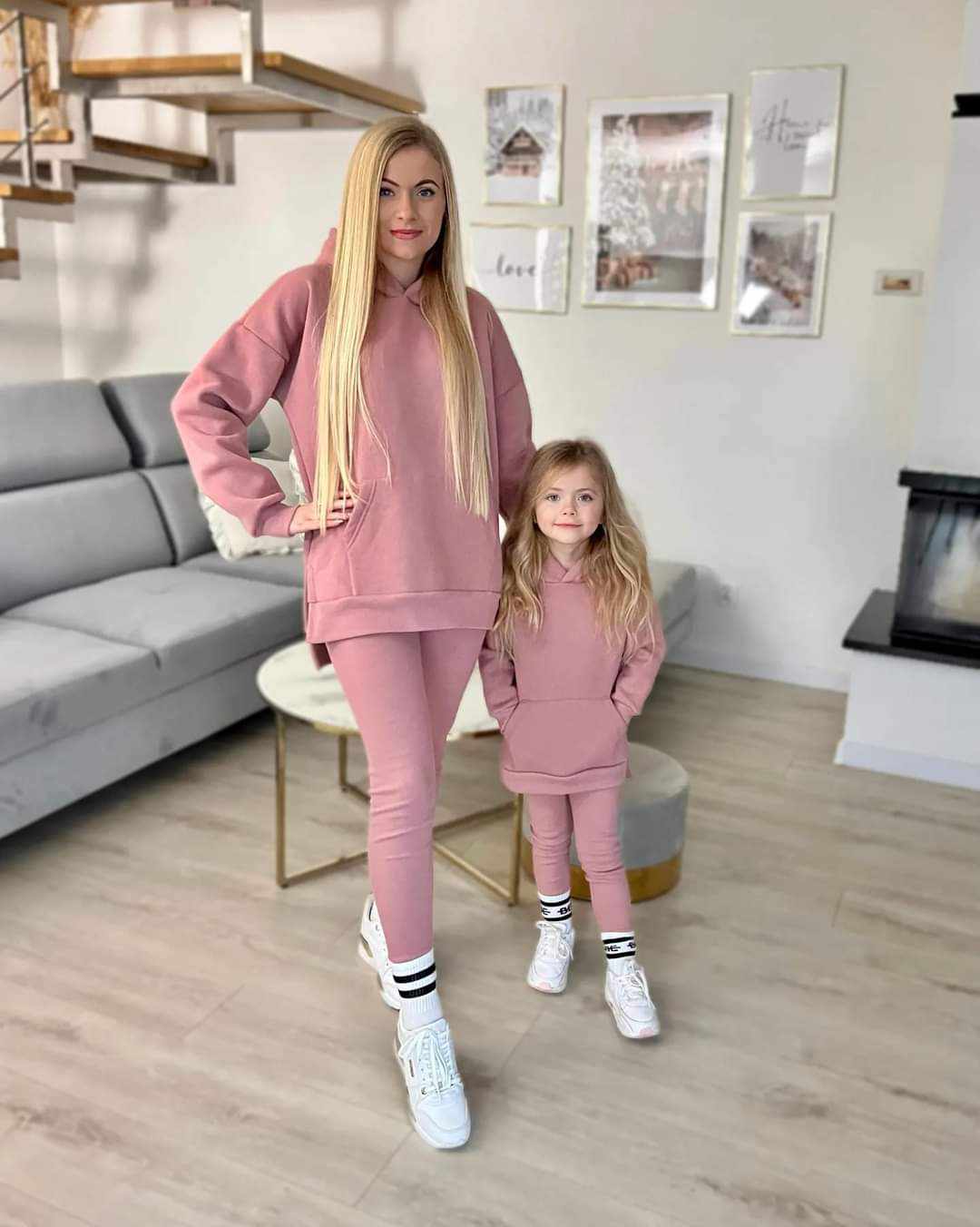 Bluza i leginsy dziecięce w kolorze różowym tworzą uroczy zestaw dla dziewczynki.