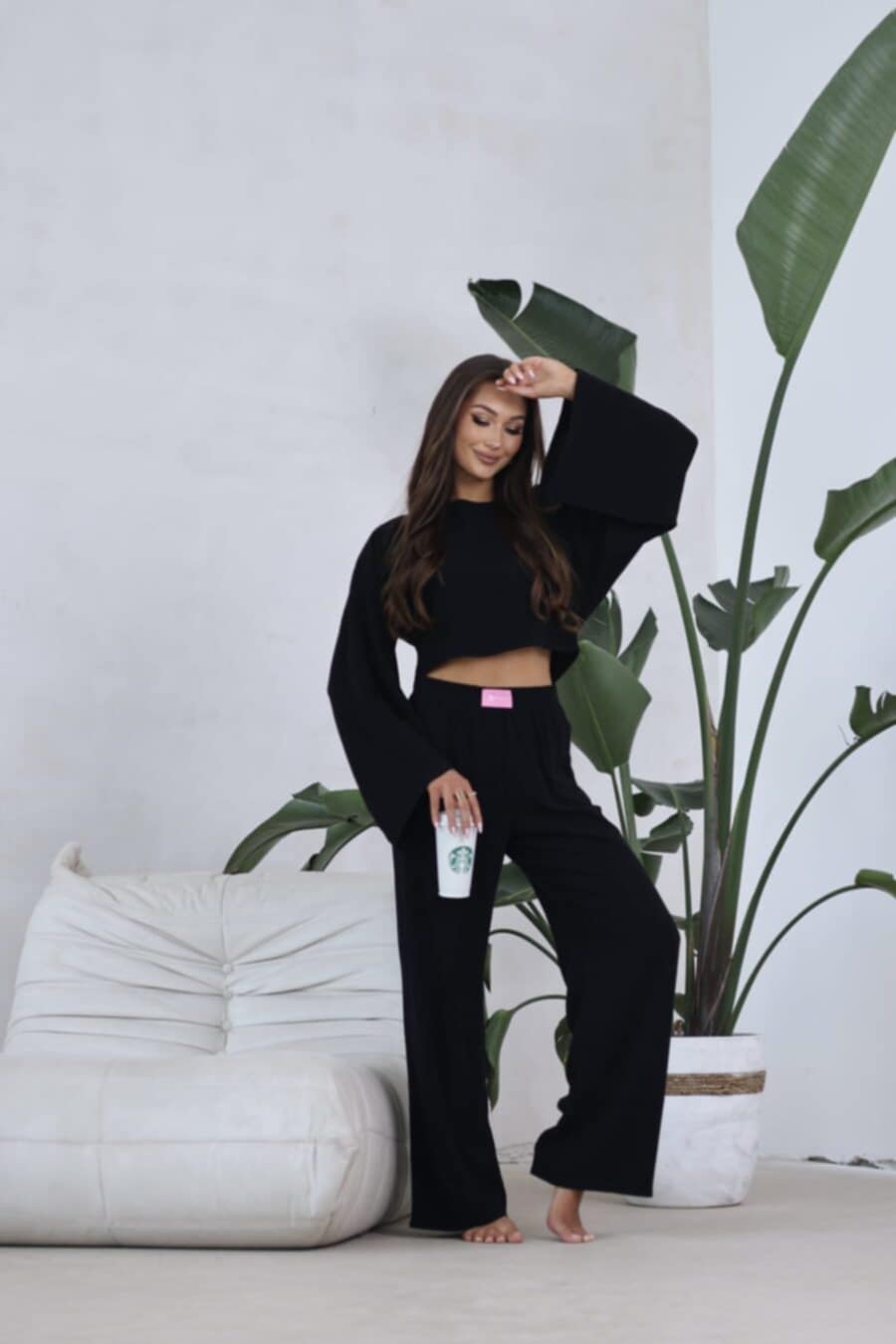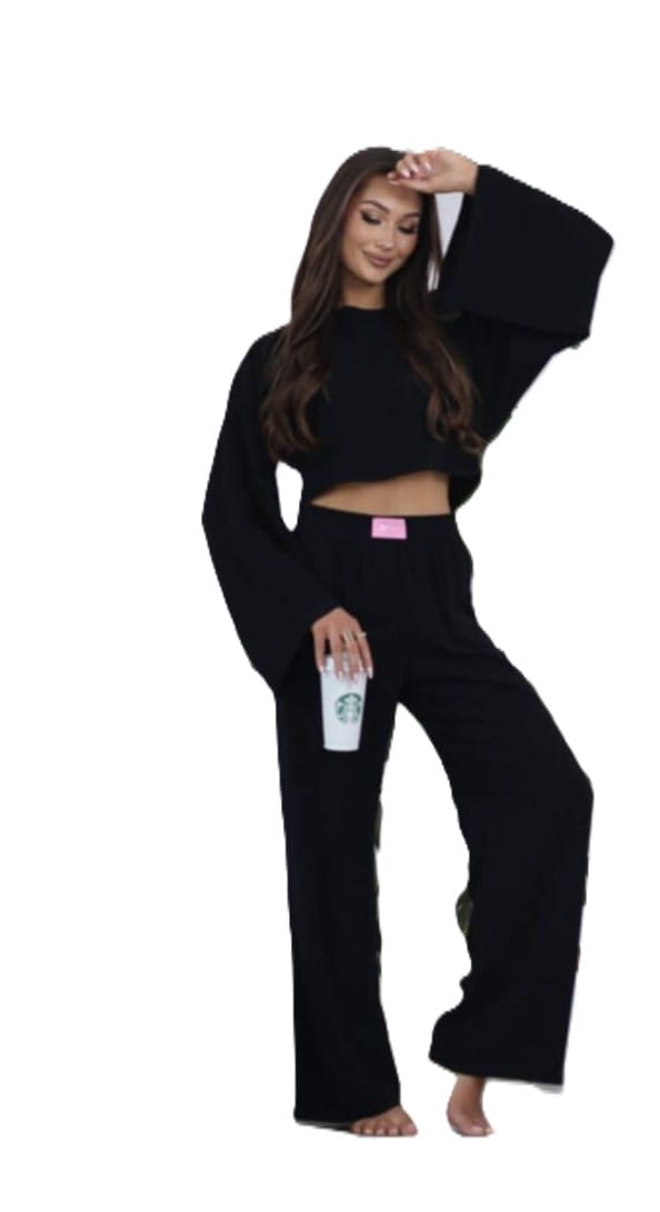- Modny i uniwersalny krój – szerokie rękawy i nogawki podkreślają nowoczesny styl