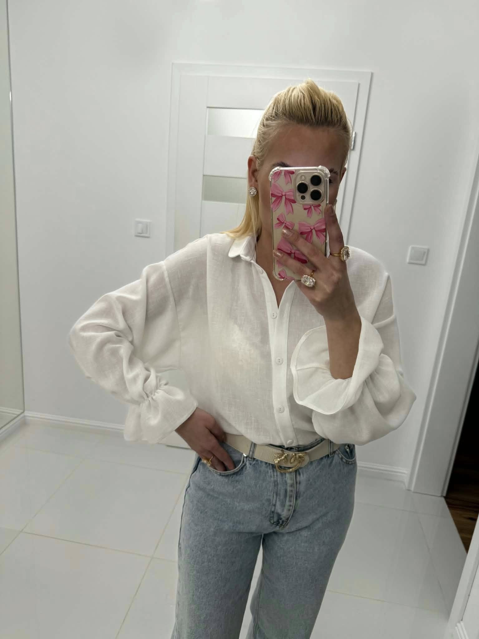 Koszula damska 100% len z falbanką biała