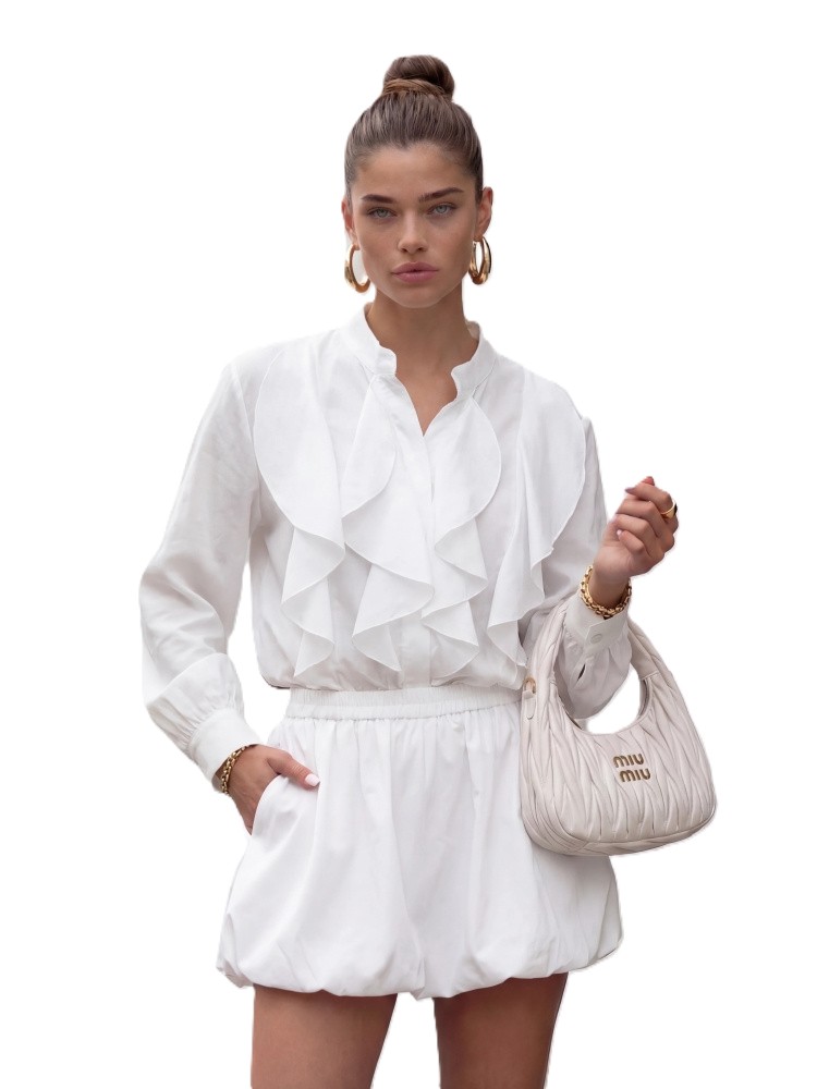 Koszula damska biała z falbanami długi rękaw przewiewna