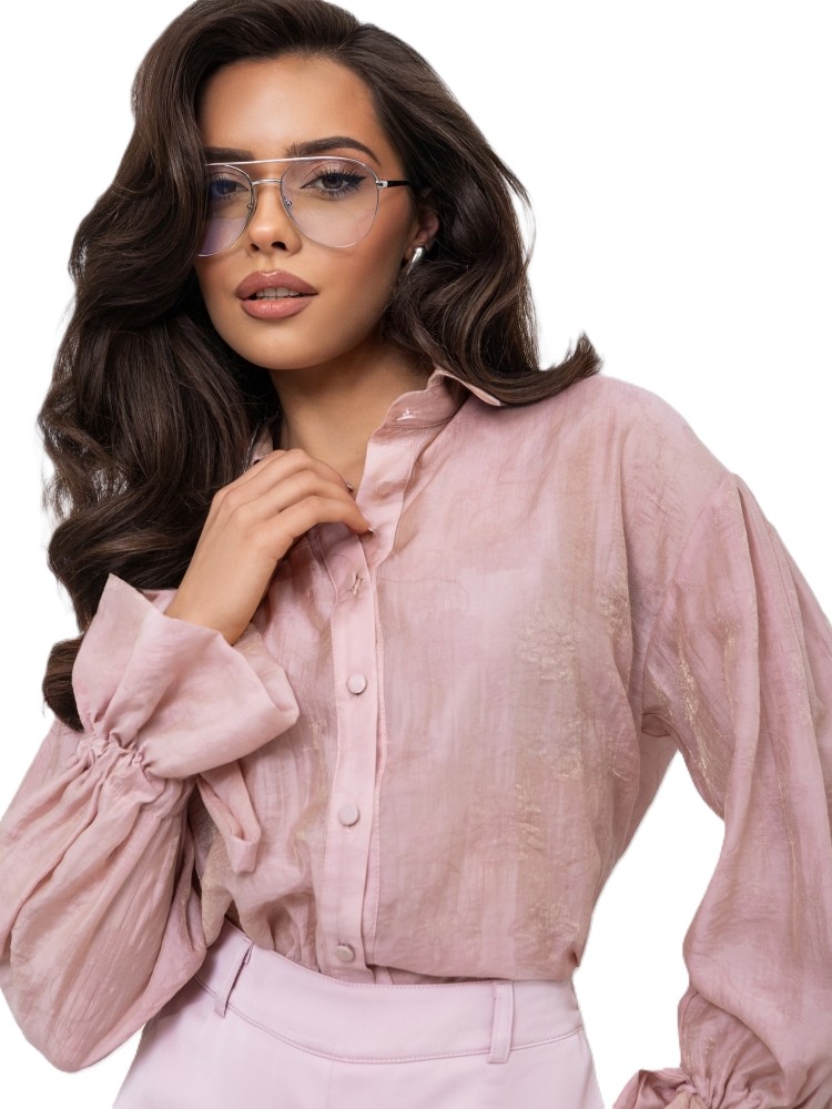 Koszula damska pudrowy róż długi rękaw wzór kwiatów