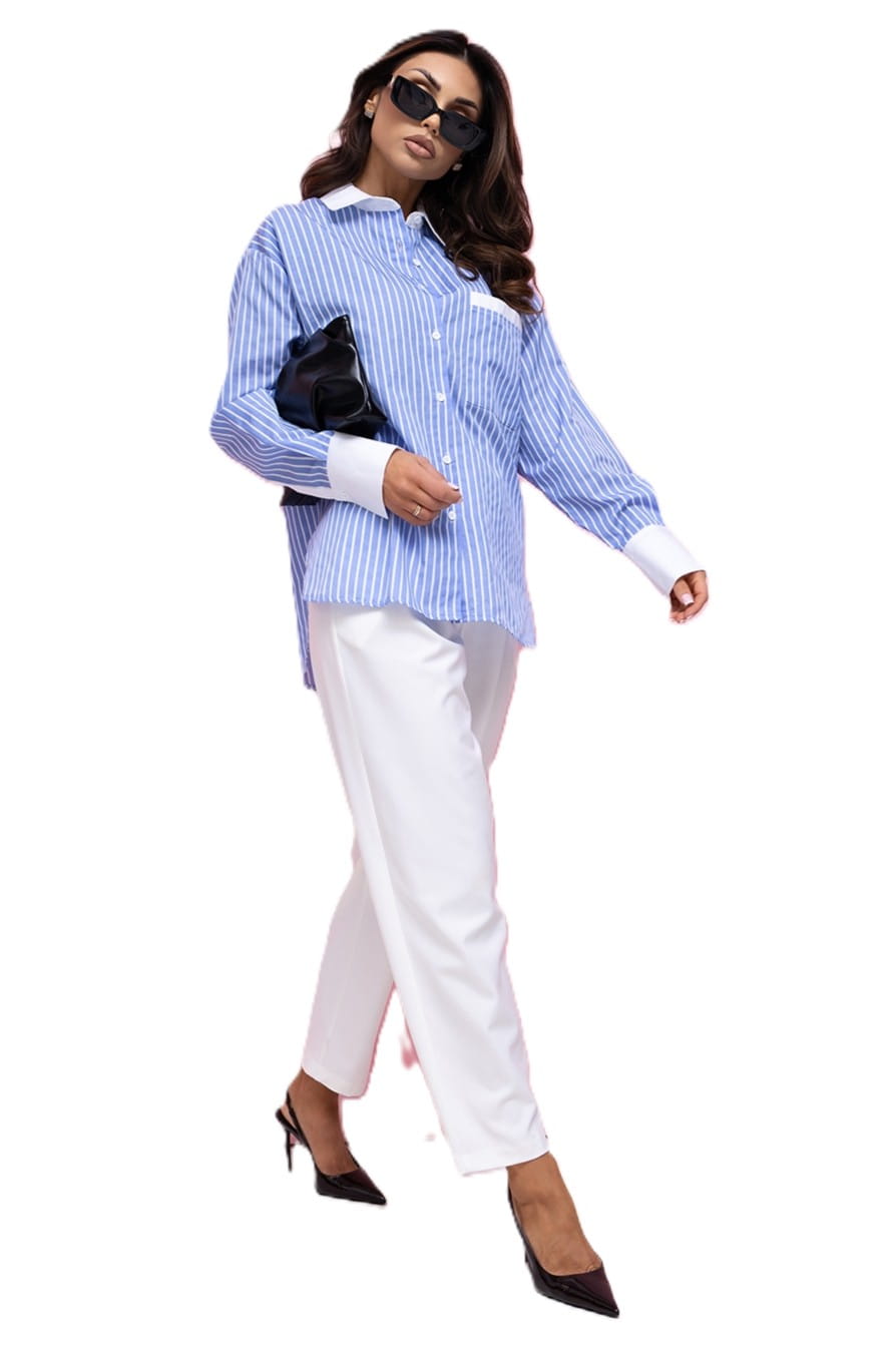 Koszula damska w paski biało-niebieska