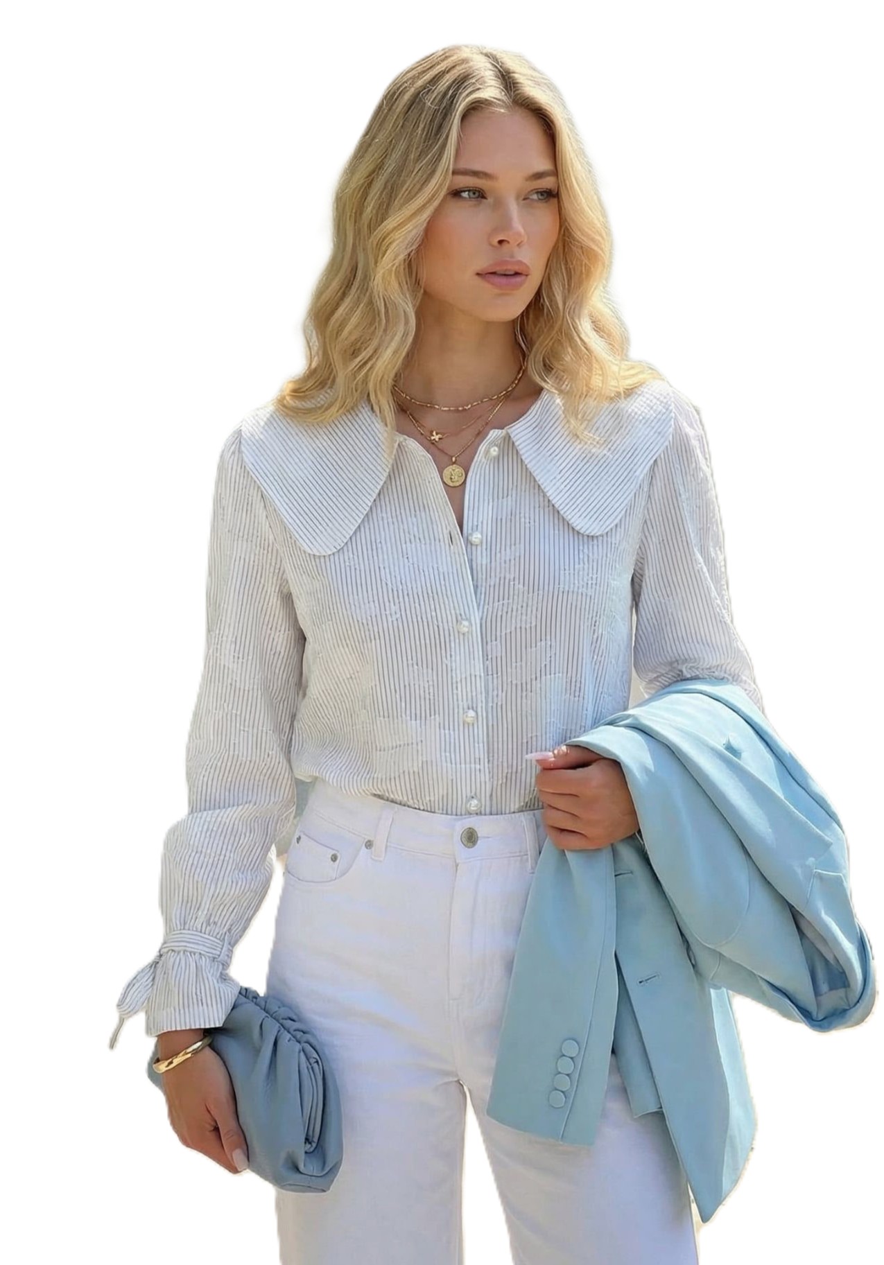 Koszula damska biało-niebieskie paski ,luźny krój i wiązane mankiety – elegancja i komfort na co dzień.