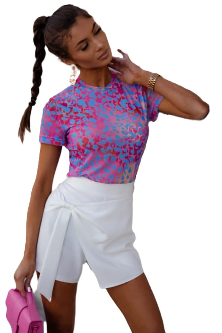Bluzka damska w kolorze różowo-niebieskim z modnym wzorem „ciapek” – polska produkcja.
