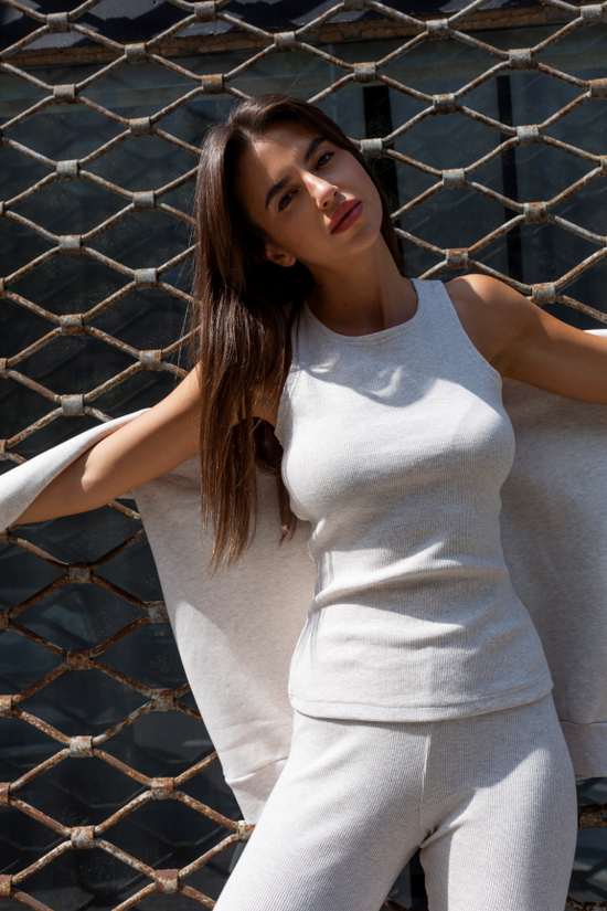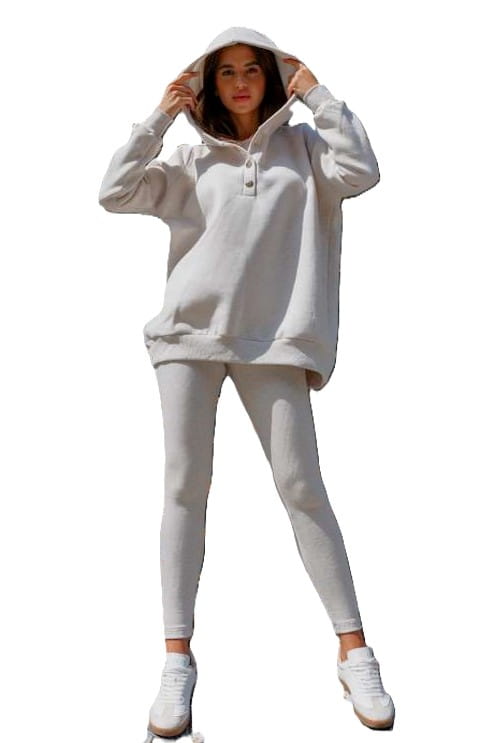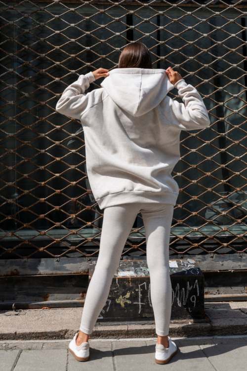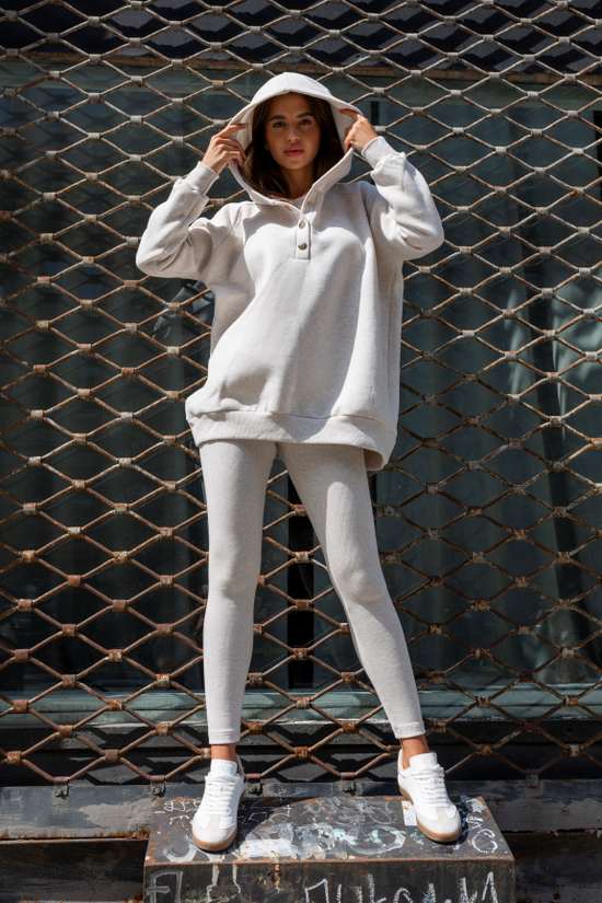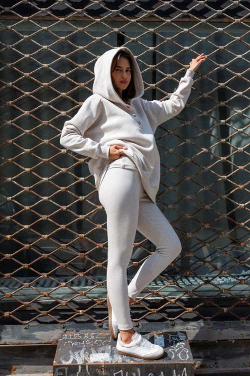 LaBalancia Dres damski Komplet trzyczęściowy bluza legginsy top bokserka beż melanż